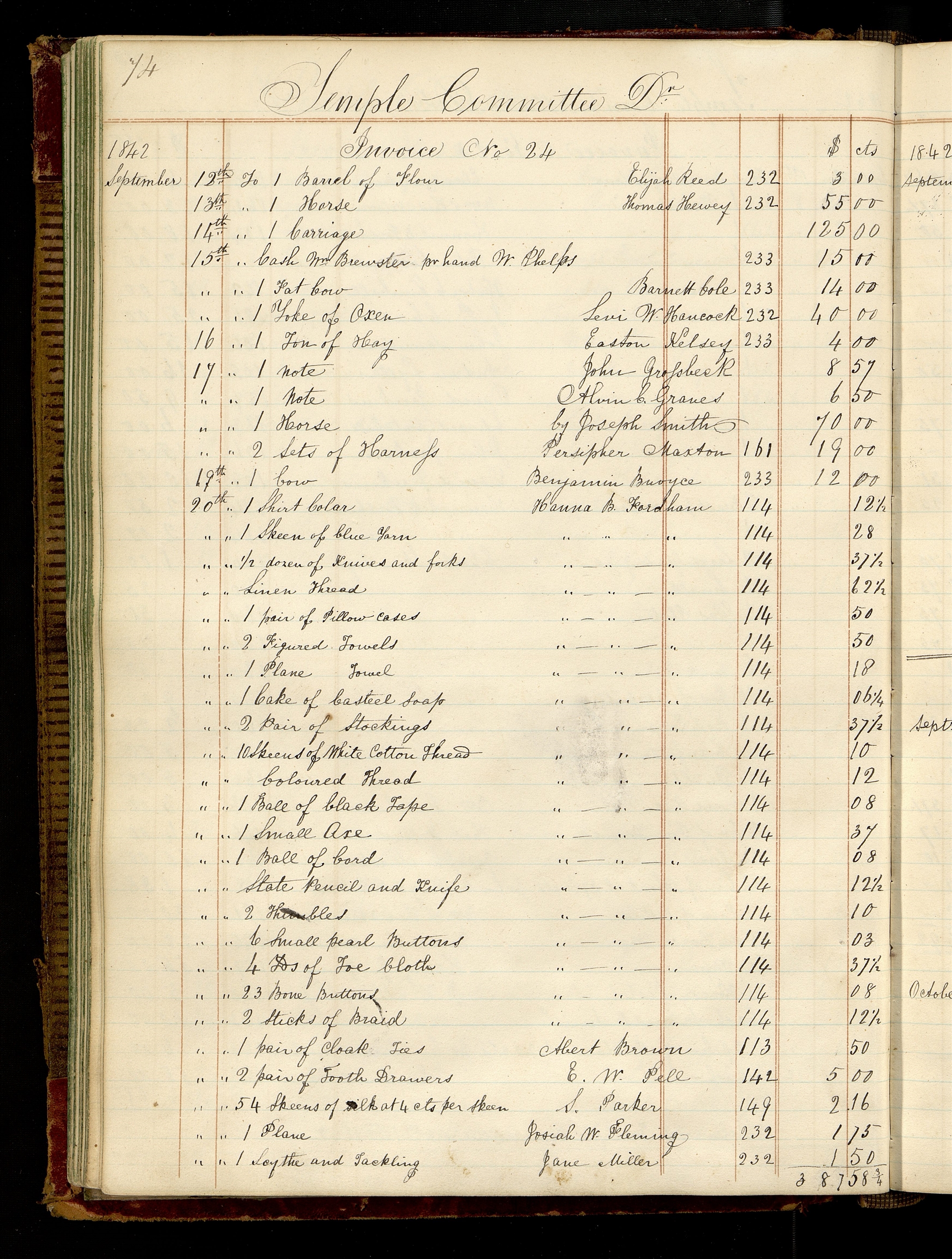 | September 12th. | To 1 Barrel of Flour | Elijah Reed | 232 | 3.00 |
