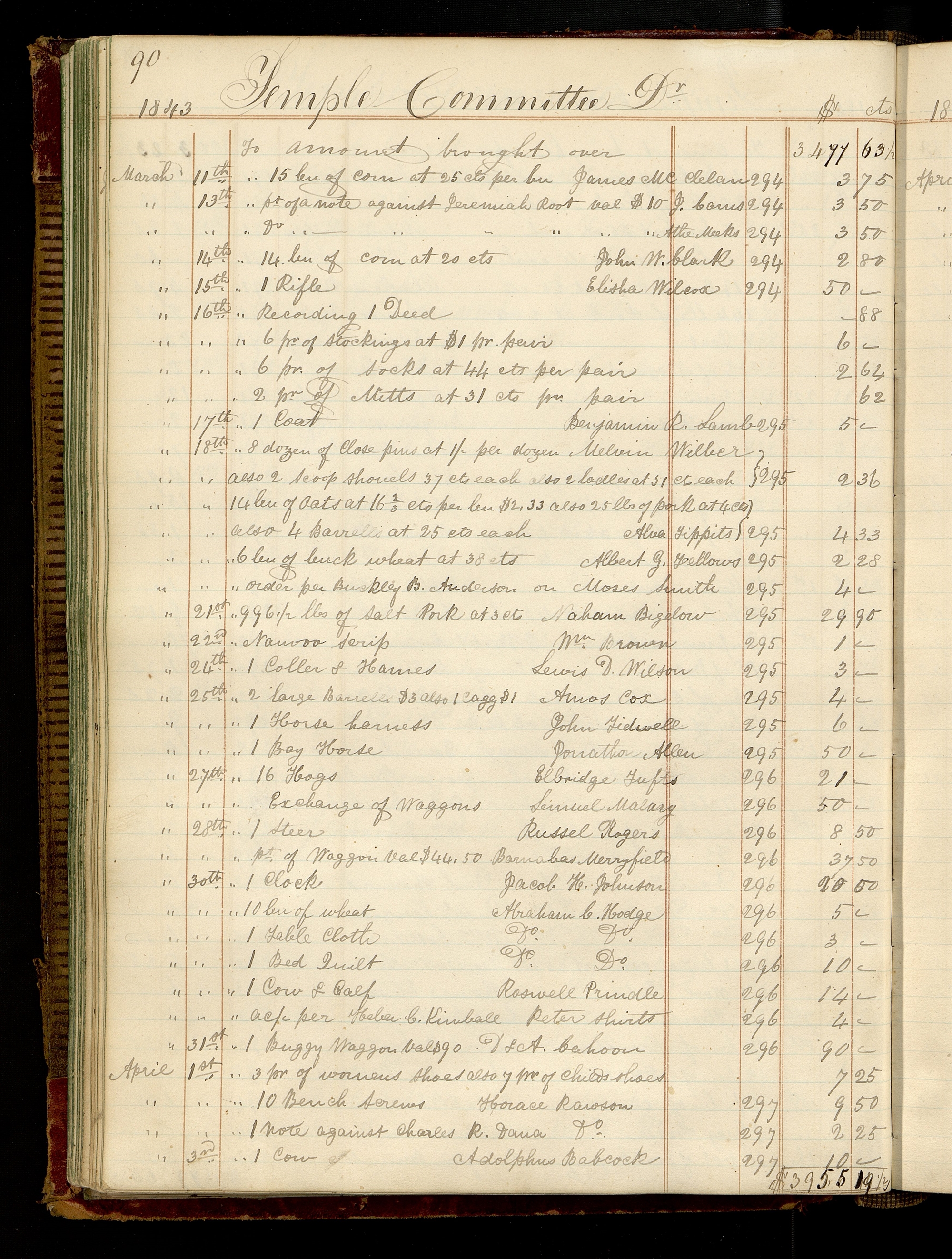 This likely led to the inscription of “Temple Committee Book A” on the spine of the volume. Some have mistaken this as an indication that this record book belonged to the Nauvoo temple committee; however, these are not temple committee records but rather accounts between the trustee-in-trust office and the Nauvoo temple committee.