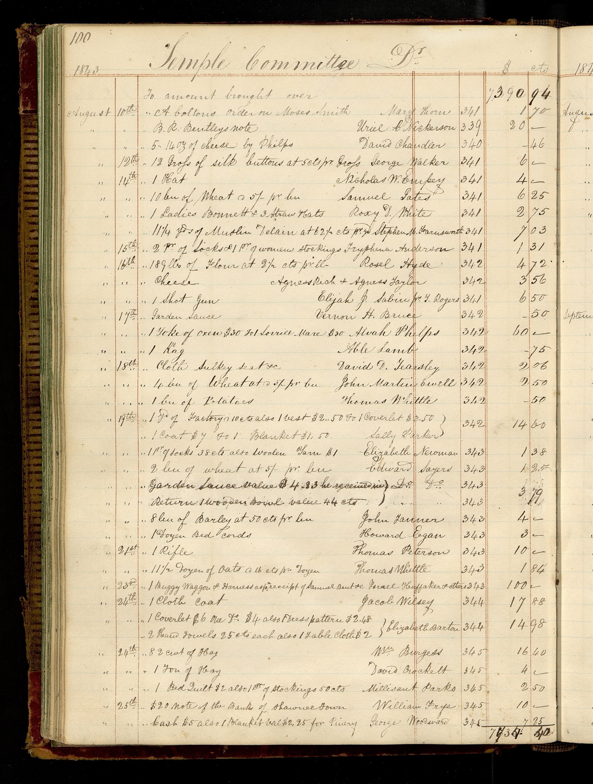 This likely led to the inscription of “Temple Committee Book A” on the spine of the volume. Some have mistaken this as an indication that this record book belonged to the Nauvoo temple committee; however, these are not temple committee records but rather accounts between the trustee-in-trust office and the Nauvoo temple committee.