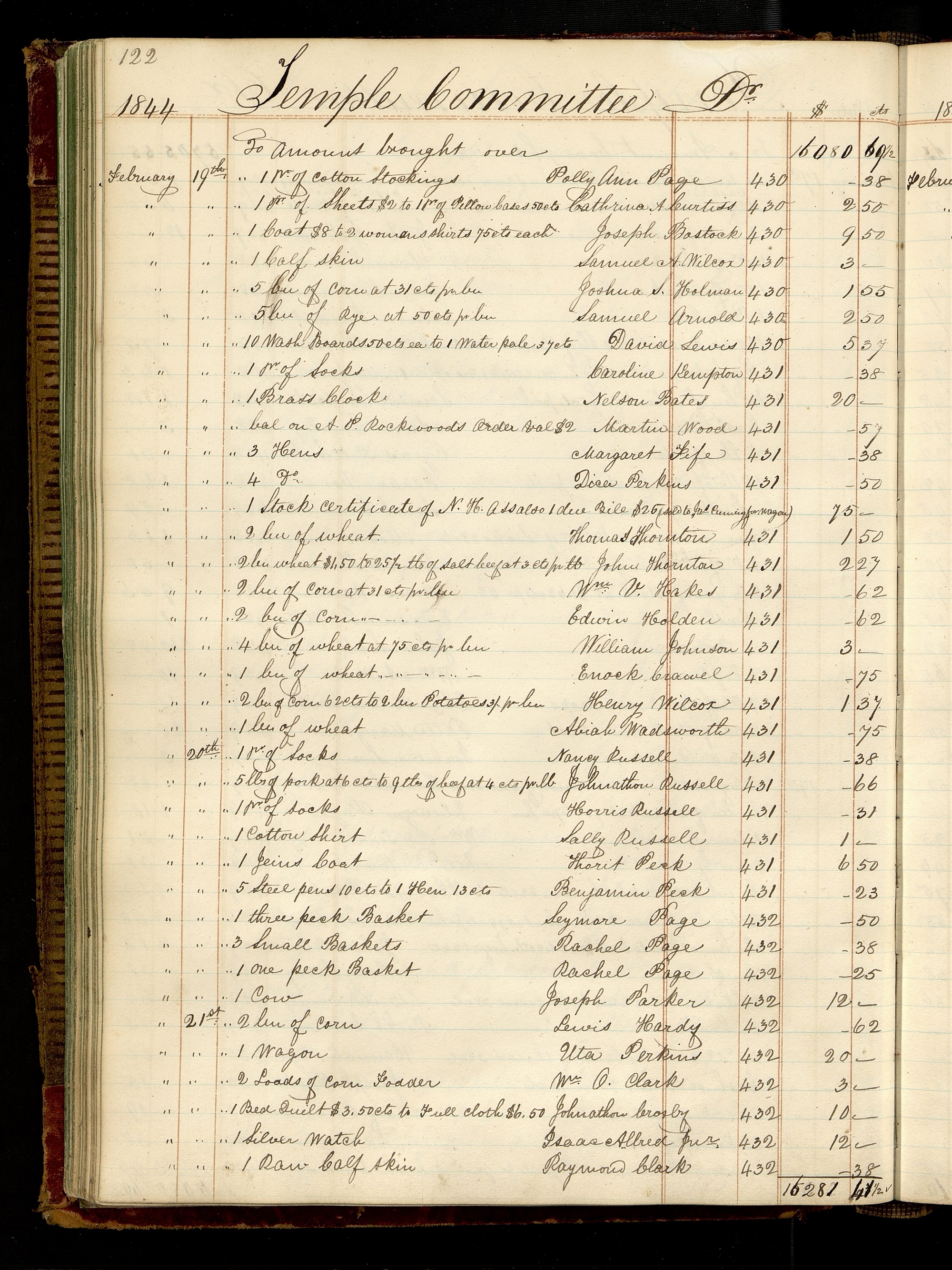 | [February 19th.] | [To] 1 bu of wheat | Abiah Wadsworth | 431 | 0.75 |