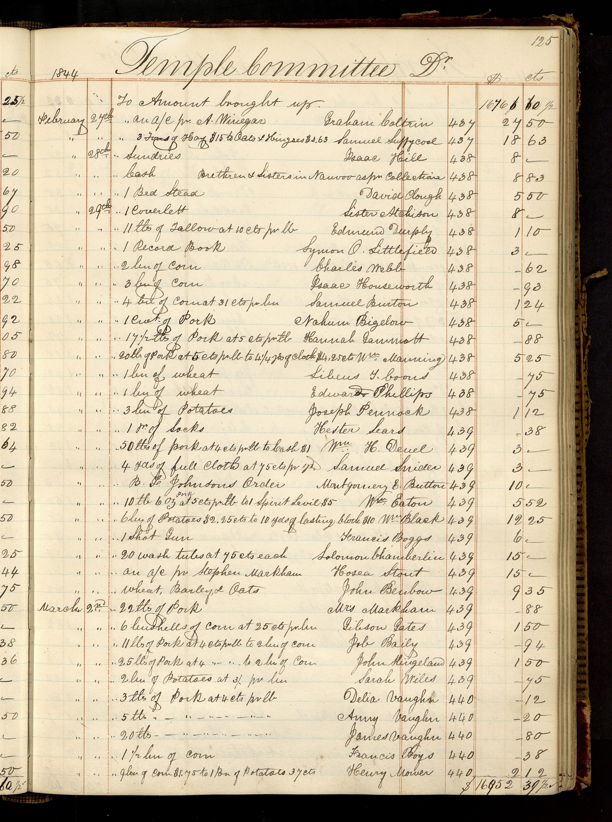 | [February 29th.] | [To] 6 bu of Potatoes $2.25 to 10 yds of Cloth $10.00 | 439 | 12.25 | |