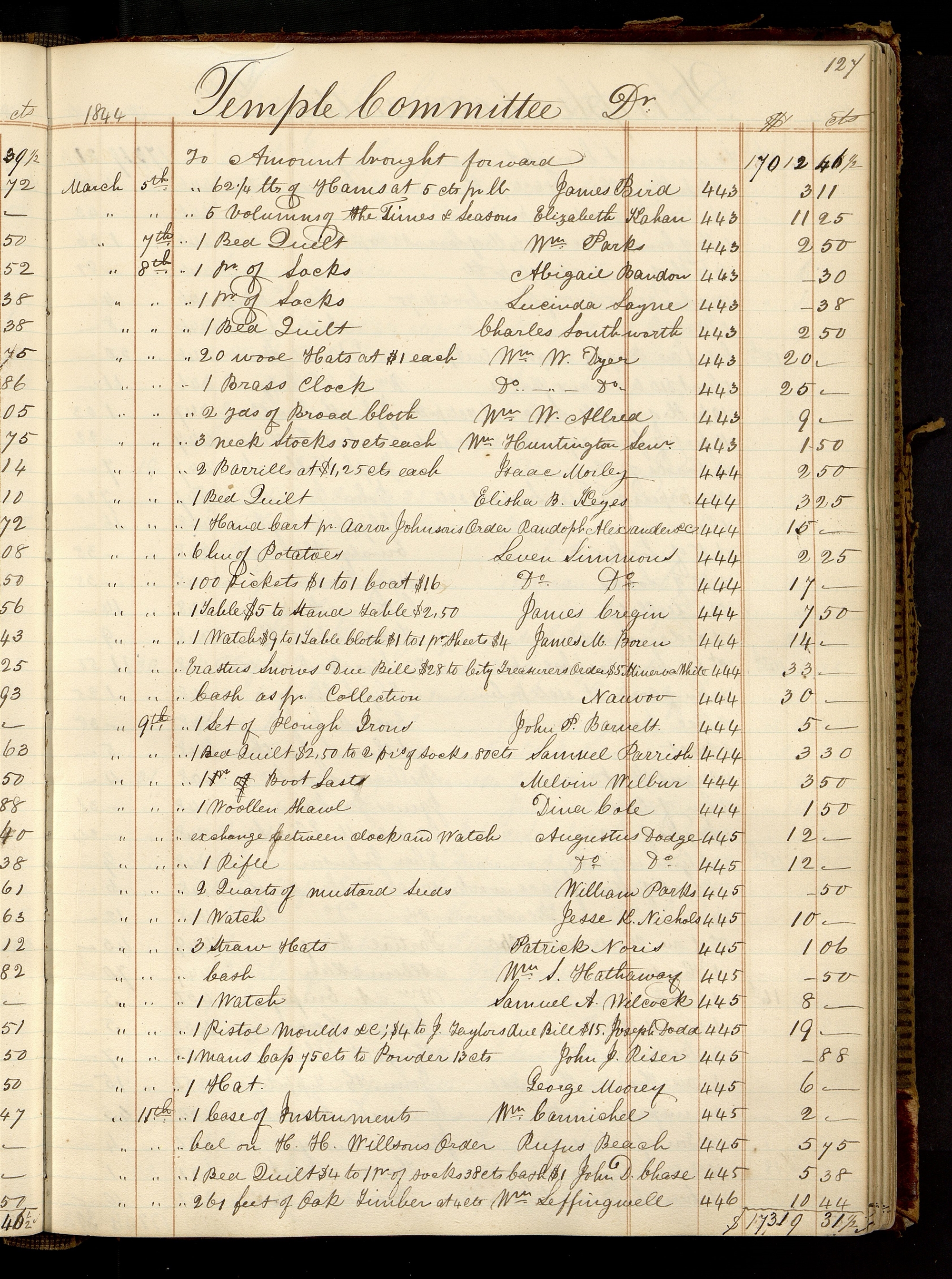 | [March 5th.] | [To] 5 volumns of The Times & Seasons | Elizabeth Kahan | 443 | 11.25 |