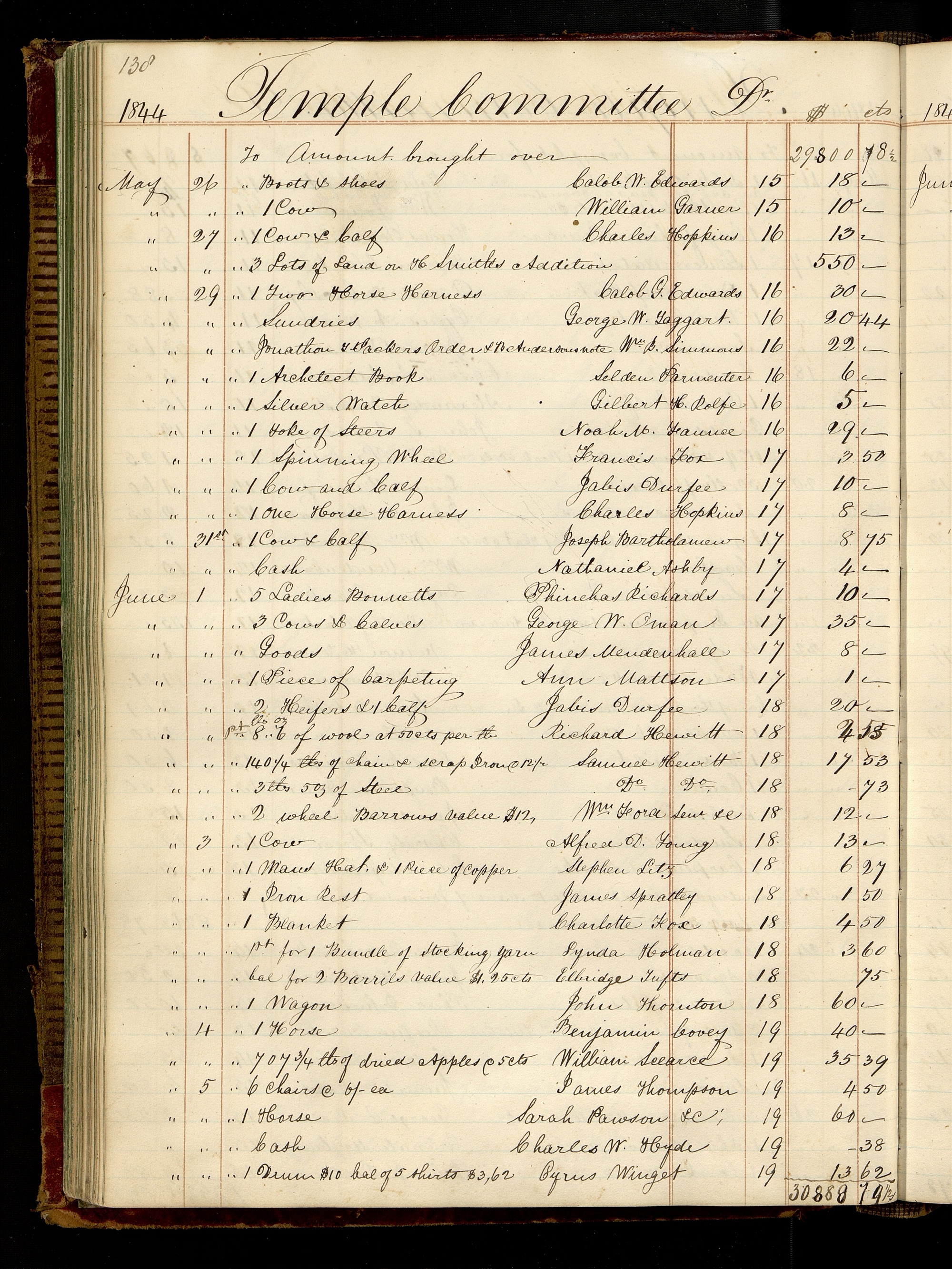 This likely led to the inscription of “Temple Committee Book A” on the spine of the volume. Some have mistaken this as an indication that this record book belonged to the Nauvoo temple committee; however, these are not temple committee records but rather accounts between the trustee-in-trust office and the Nauvoo temple committee.
