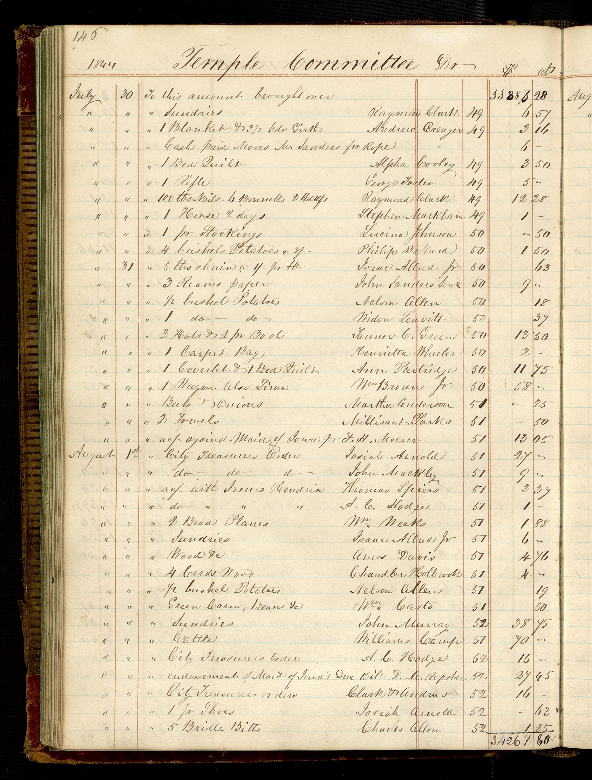 | [July 31] | [To] 1 [bushel Potatoes] | Widow Leavitt | 50 | 0.37 |