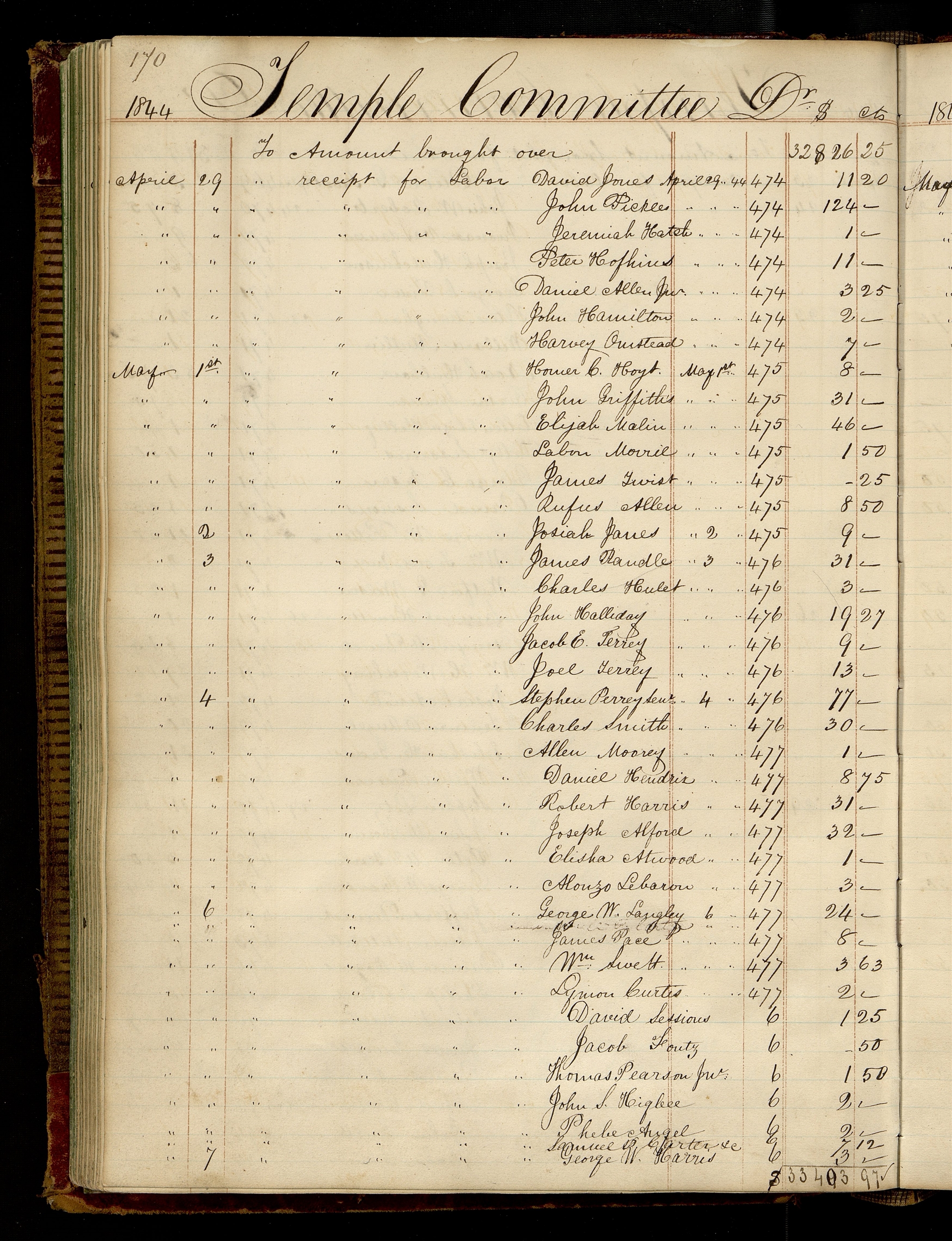 | [May 4] | [To receipt for Labor] Joseph Alford | [4 44] | 477 | 32.00 |