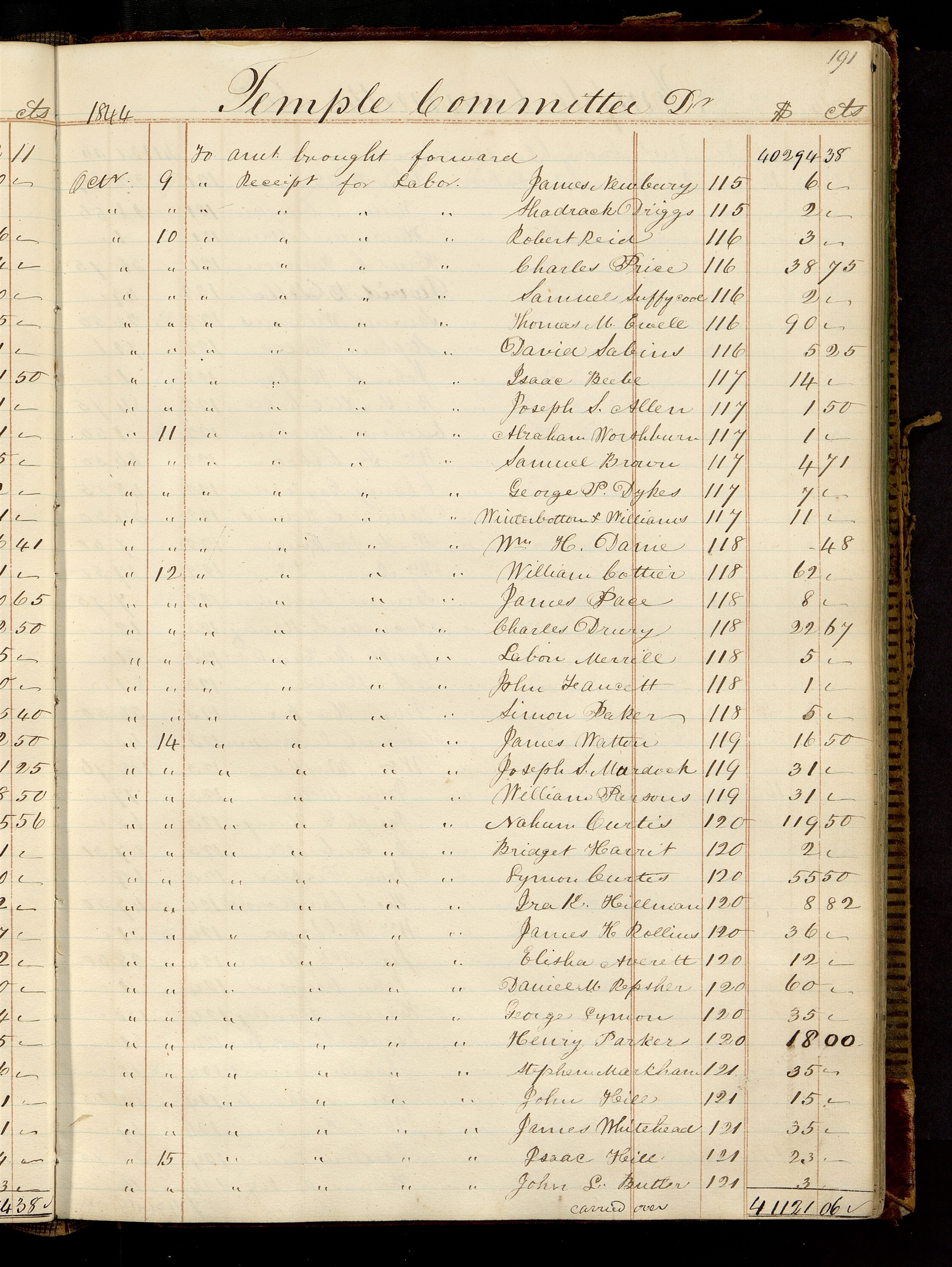 | [Octr. 14] | [To Receipt for Labor.] Joseph S. Murdock | 119 | 31.00 |