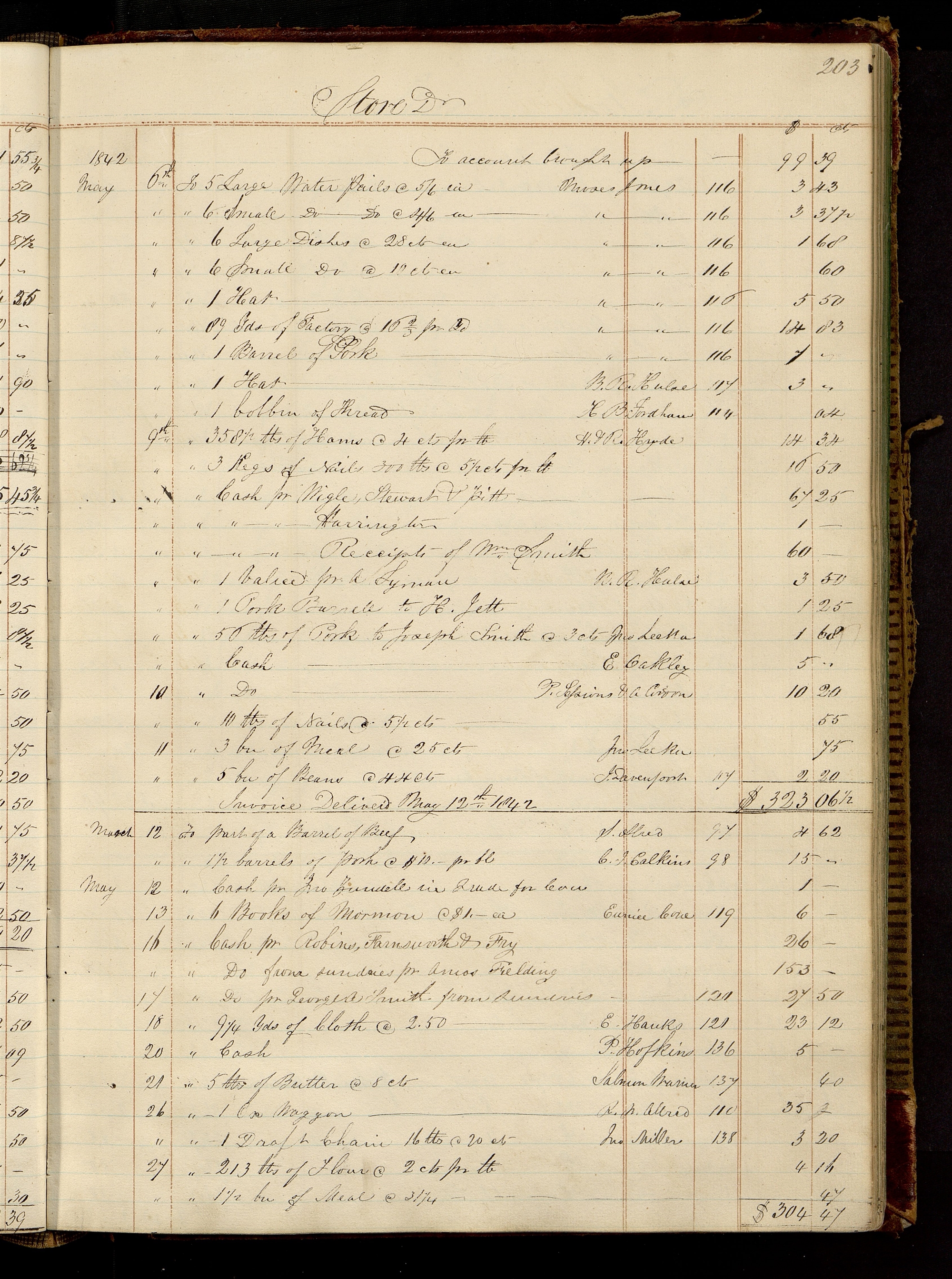 | Invoice Deliver’d May 12th. 1842 | $323.06½ | |||