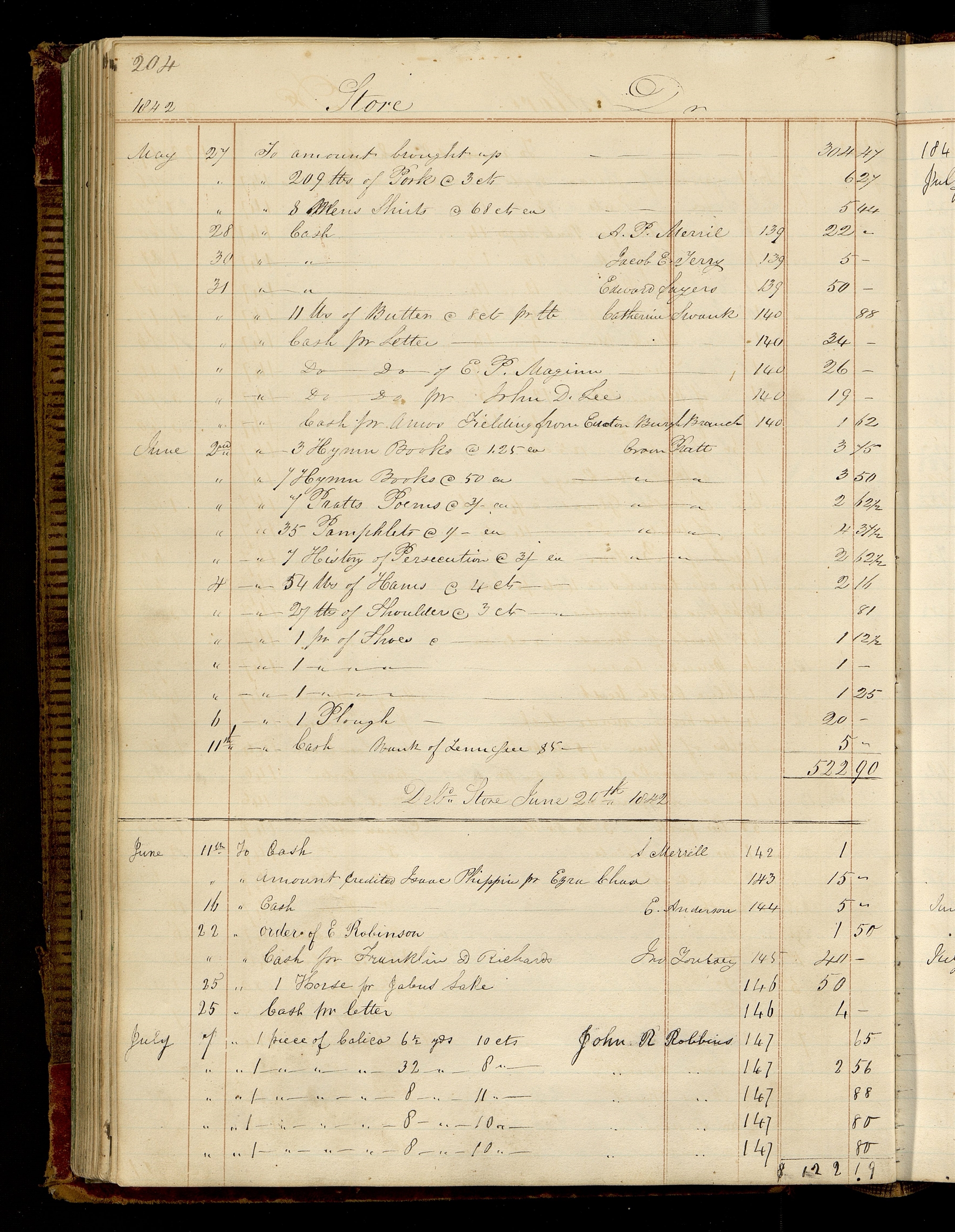 This likely led to the inscription of “Temple Committee Book A” on the spine of the volume. Some have mistaken this as an indication that this record book belonged to the Nauvoo temple committee; however, these are not temple committee records but rather accounts between the trustee-in-trust office and the Nauvoo temple committee.