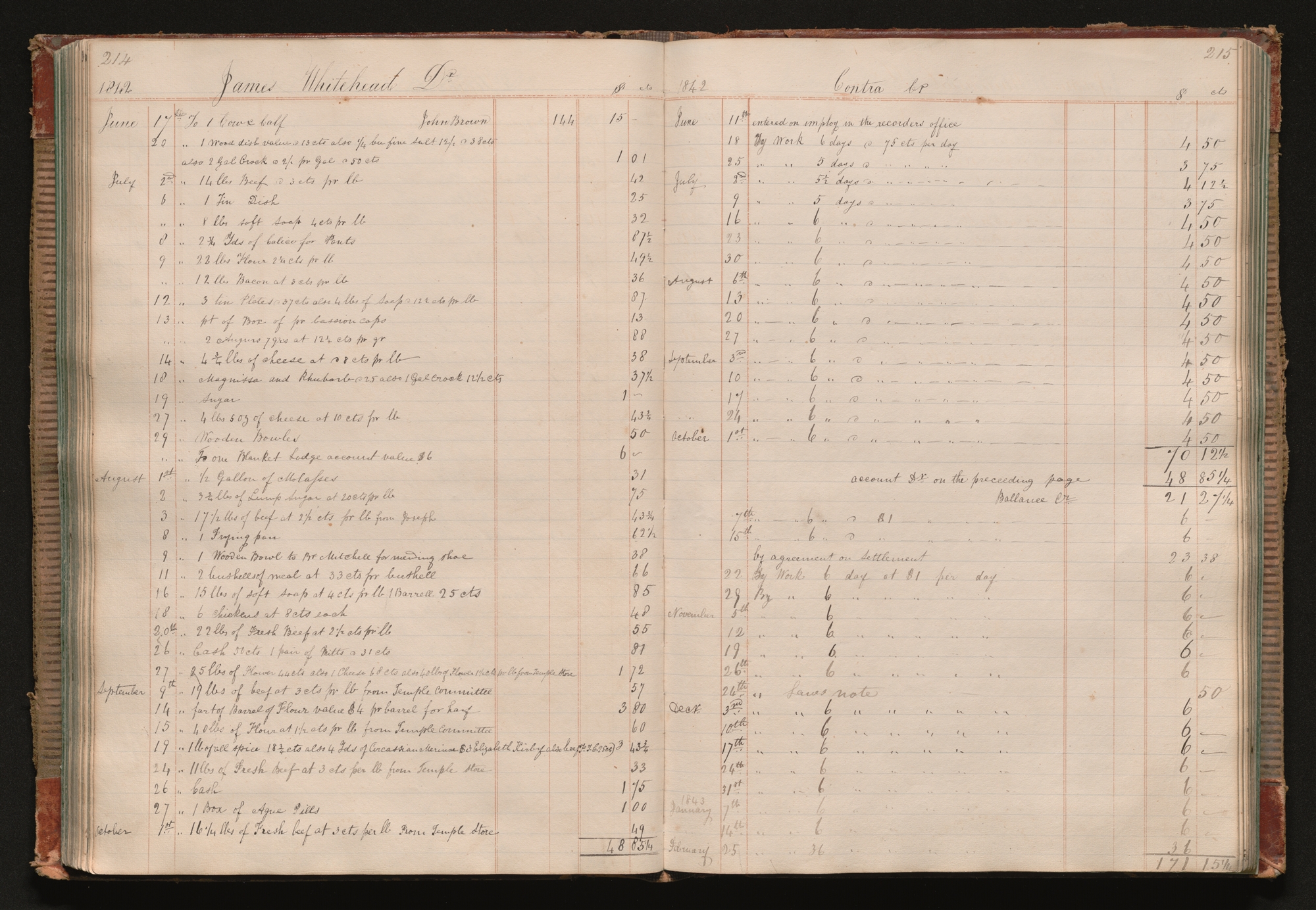 | October 1st. | [To] 16¼ lbs of Fresh beef at $0.03 per lb From Store | 0.49 | [January] 14th. | [By Work] 6 [day at $1.00 per day] | 6.00 | |