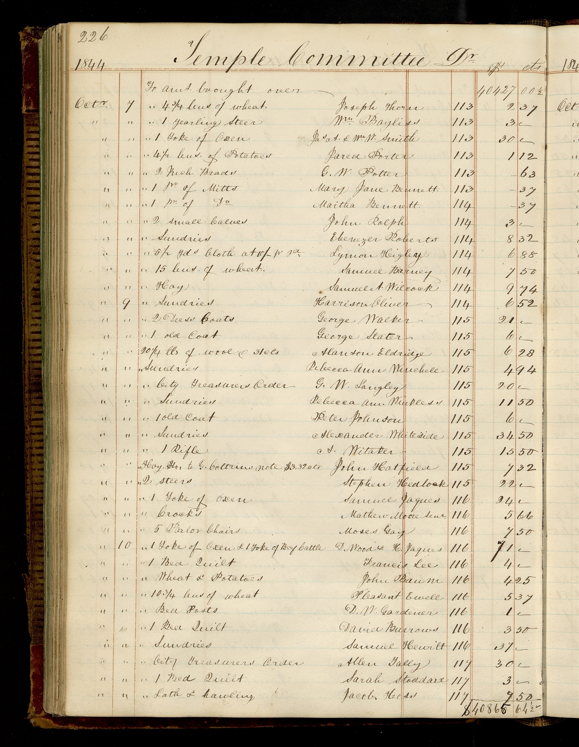 | [Octr.] 10 | [To] 1 Yoke of Oxen & 1 Yoke of Beef Cattle | & H[iram] Jaques | 116 | 71.00 |
