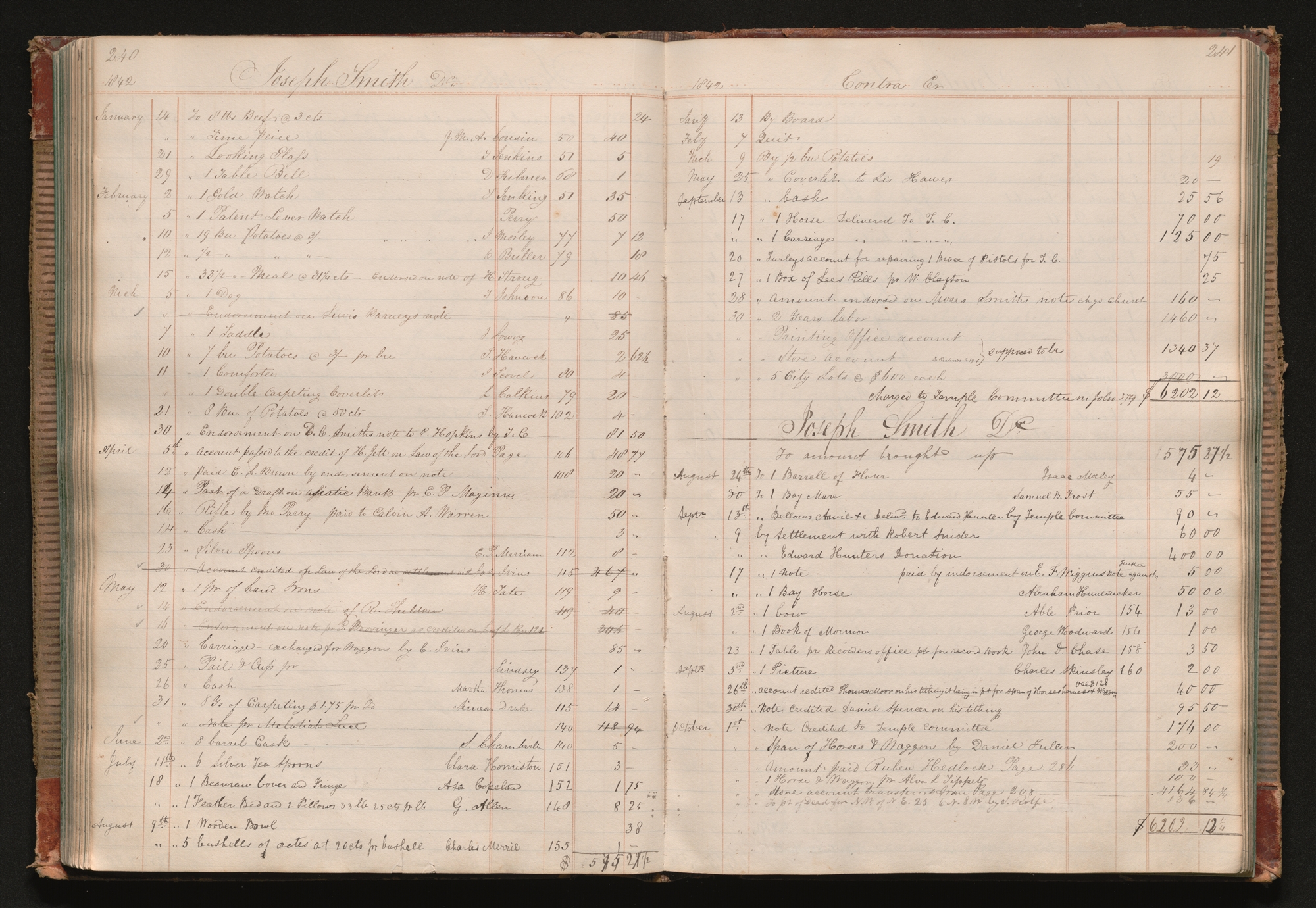 This likely led to the inscription of “Temple Committee Book A” on the spine of the volume. Some have mistaken this as an indication that this record book belonged to the Nauvoo temple committee; however, these are not temple committee records but rather accounts between the trustee-in-trust office and the Nauvoo temple committee.