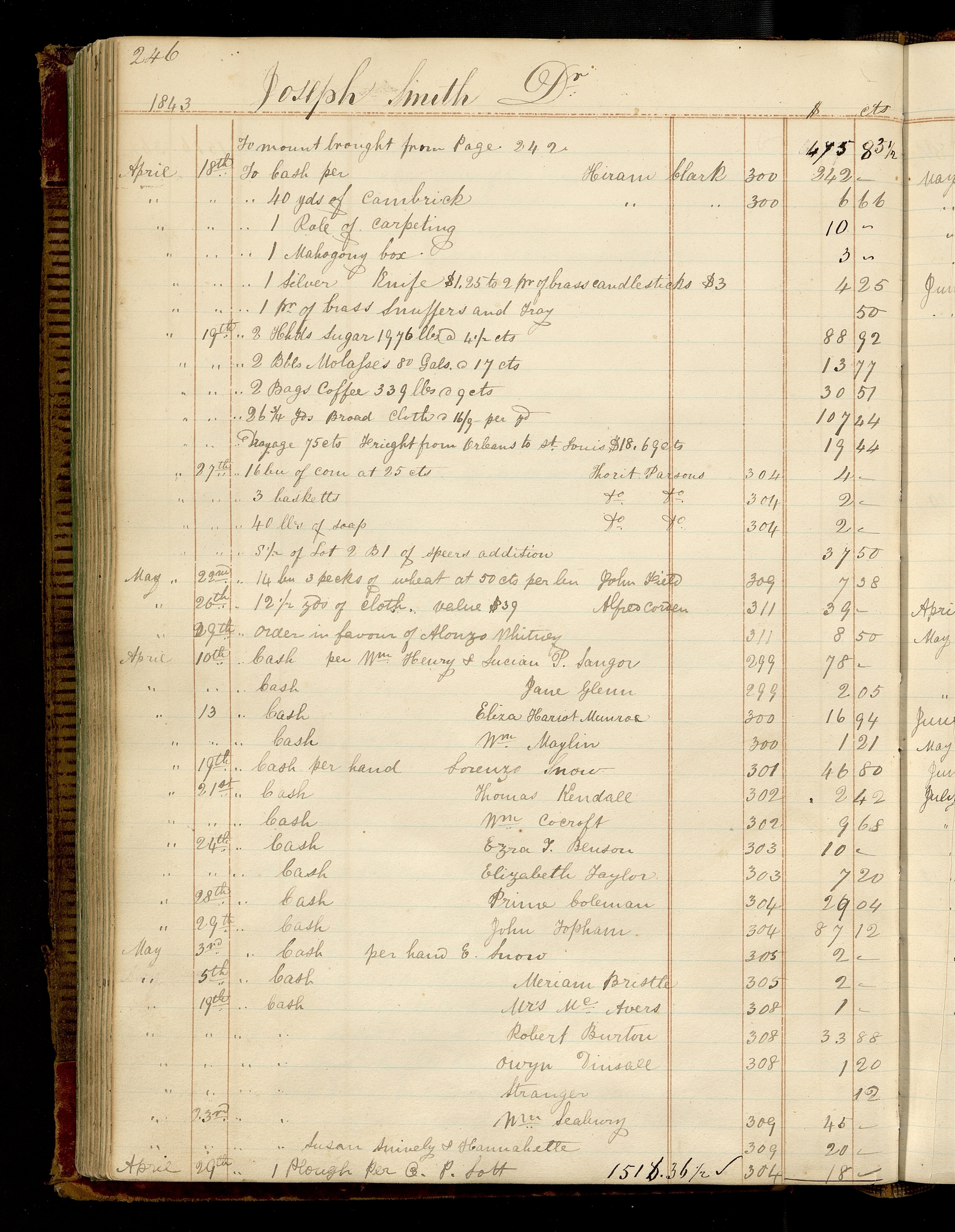This likely led to the inscription of “Temple Committee Book A” on the spine of the volume. Some have mistaken this as an indication that this record book belonged to the Nauvoo temple committee; however, these are not temple committee records but rather accounts between the trustee-in-trust office and the Nauvoo temple committee.