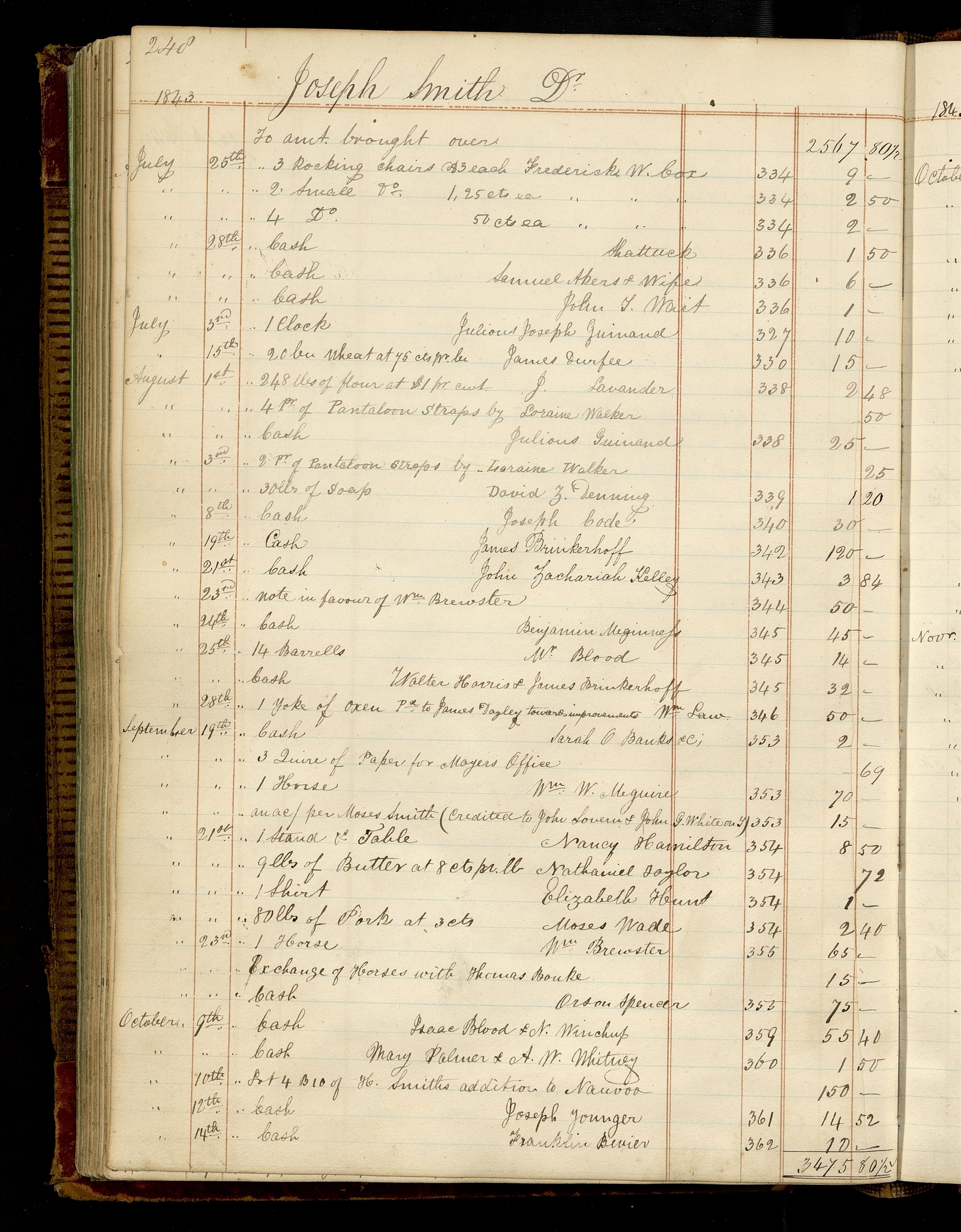 This likely led to the inscription of “Temple Committee Book A” on the spine of the volume. Some have mistaken this as an indication that this record book belonged to the Nauvoo temple committee; however, these are not temple committee records but rather accounts between the trustee-in-trust office and the Nauvoo temple committee.