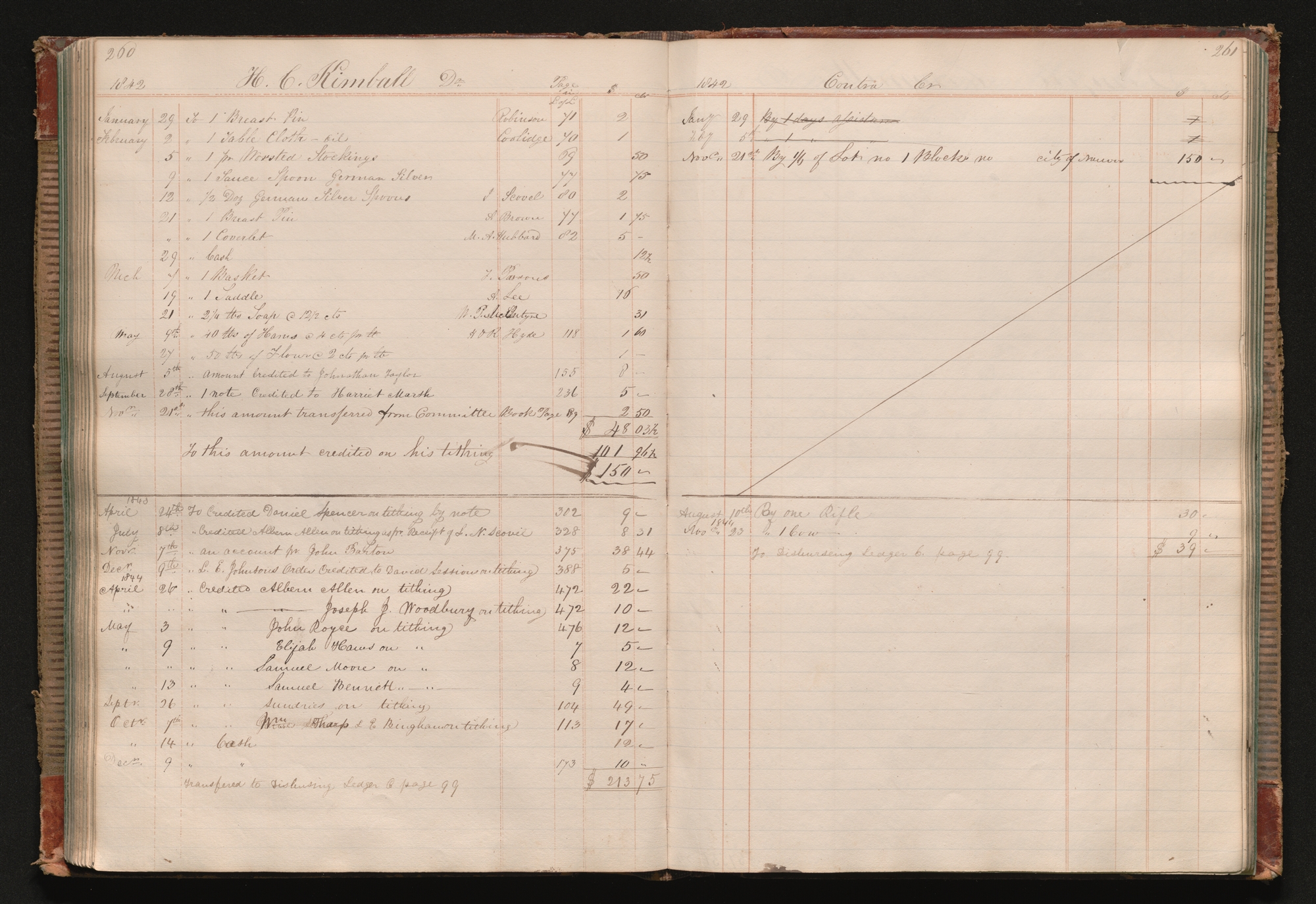 This likely led to the inscription of “Temple Committee Book A” on the spine of the volume. Some have mistaken this as an indication that this record book belonged to the Nauvoo temple committee; however, these are not temple committee records but rather accounts between the trustee-in-trust office and the Nauvoo temple committee.