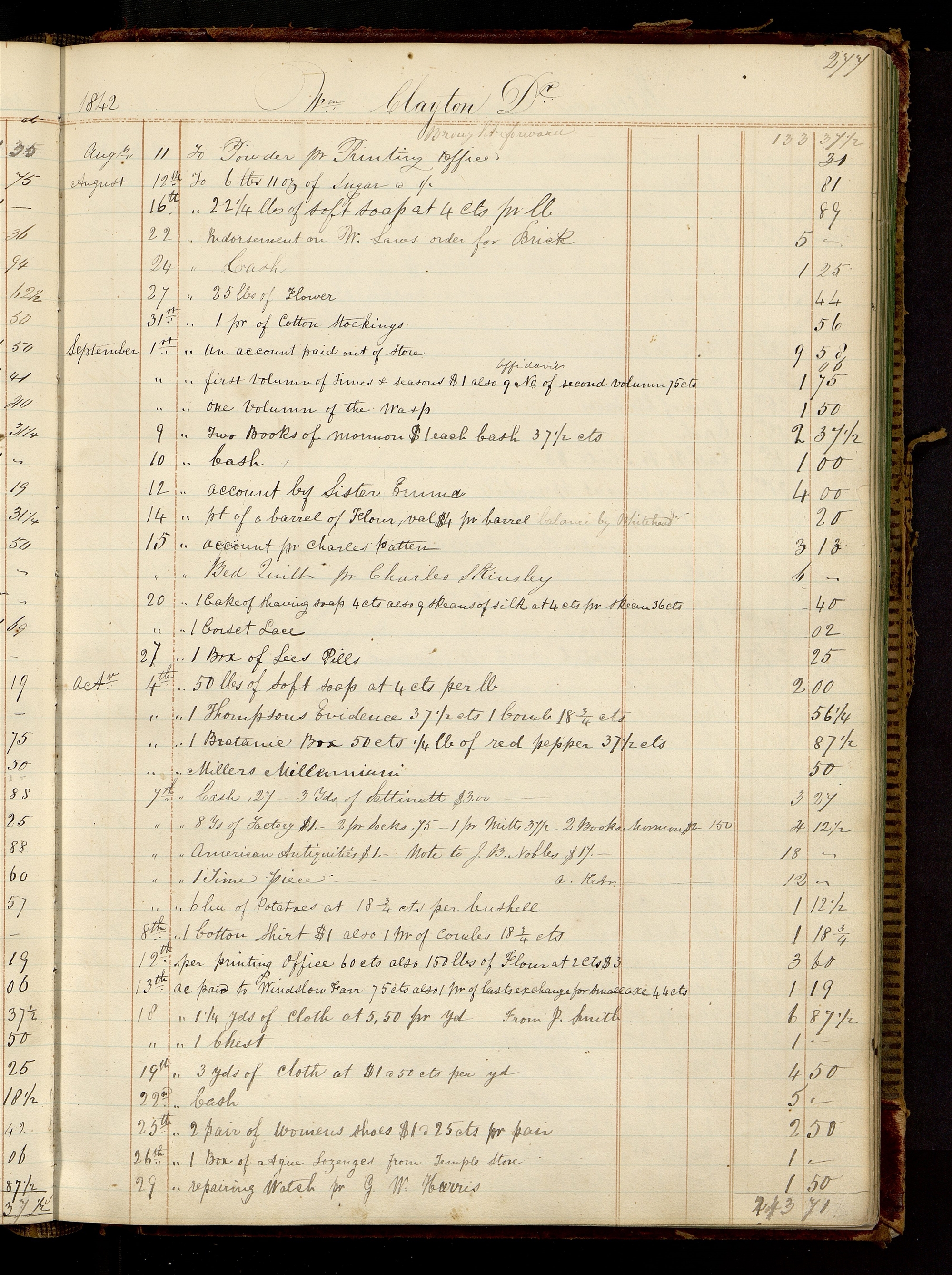 | 9 | [To] Two Books of Mormon $1.00 each Cash $0.37½ | 1.37½ 2.37½ | |