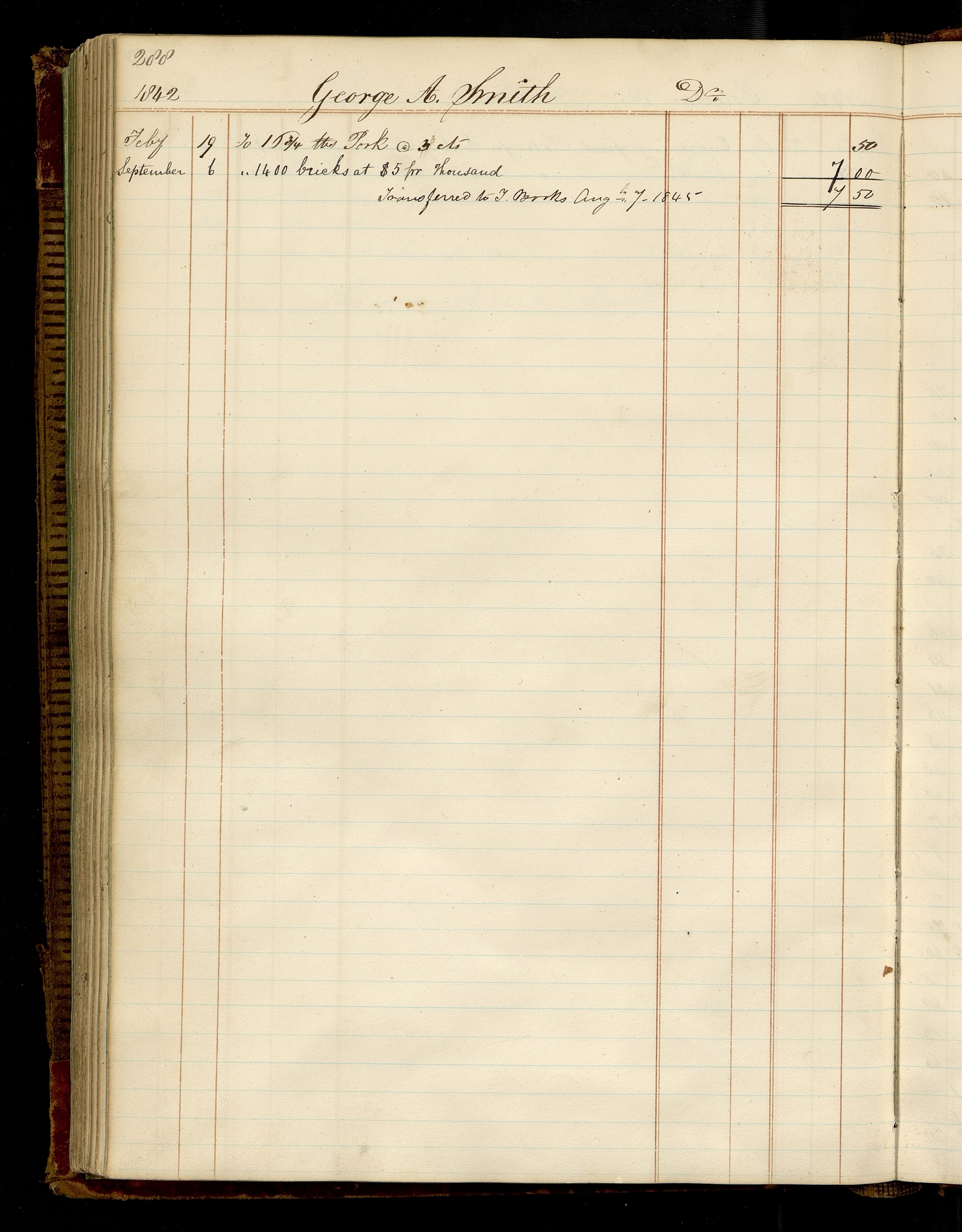 This likely led to the inscription of “Temple Committee Book A” on the spine of the volume. Some have mistaken this as an indication that this record book belonged to the Nauvoo temple committee; however, these are not temple committee records but rather accounts between the trustee-in-trust office and the Nauvoo temple committee.
