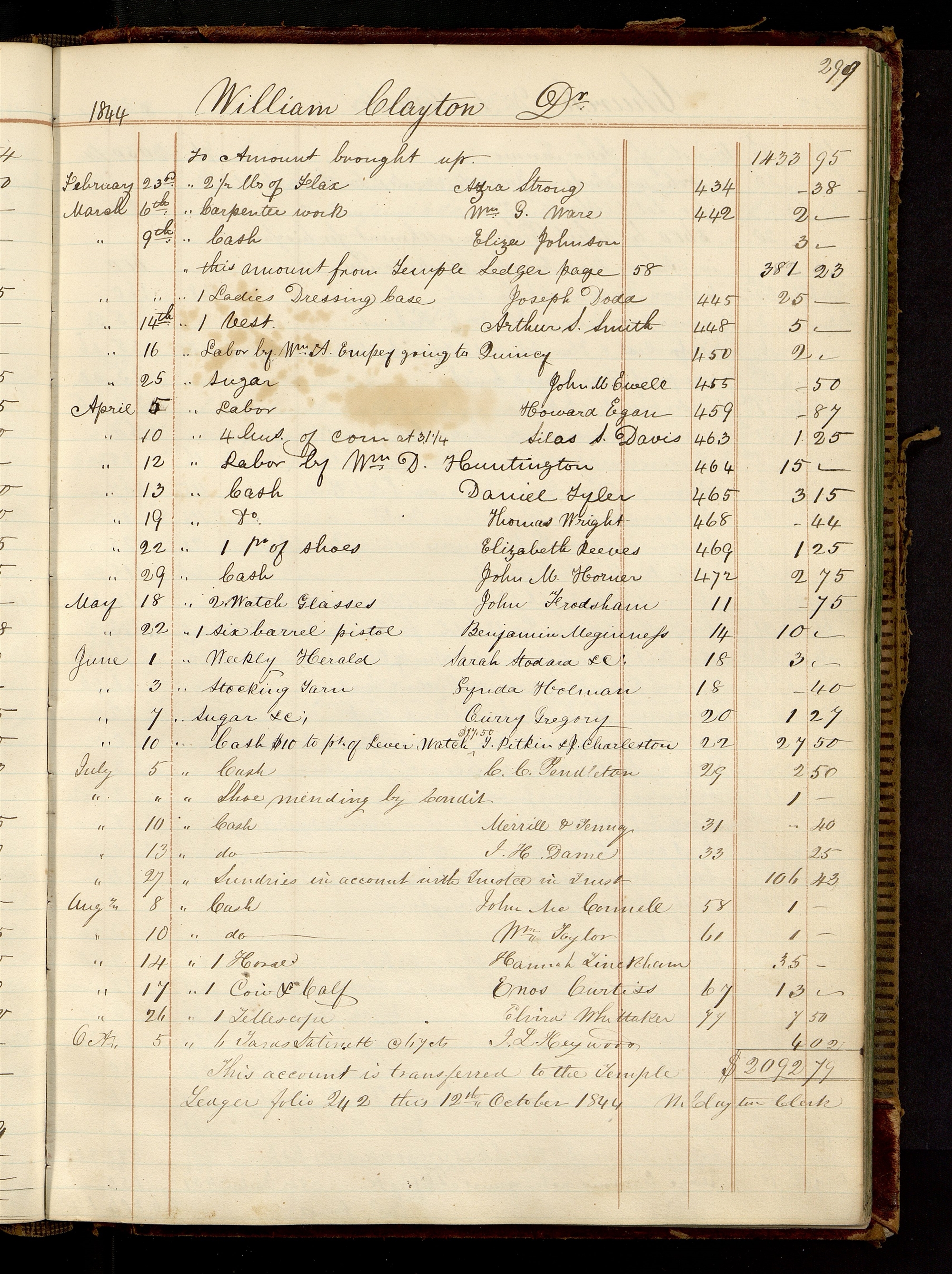 This likely led to the inscription of “Temple Committee Book A” on the spine of the volume. Some have mistaken this as an indication that this record book belonged to the Nauvoo temple committee; however, these are not temple committee records but rather accounts between the trustee-in-trust office and the Nauvoo temple committee.