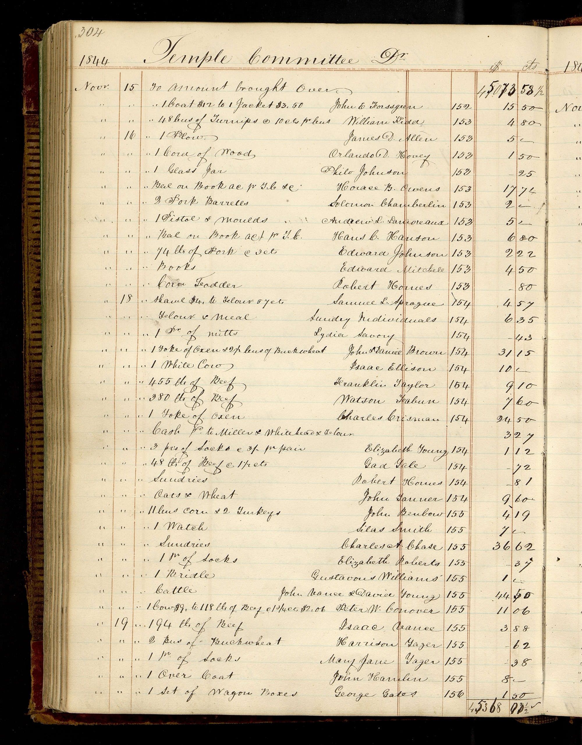 | [Novr . 18] | [To] Cattle | & David Young | 155 | 44.75 44.50 |
