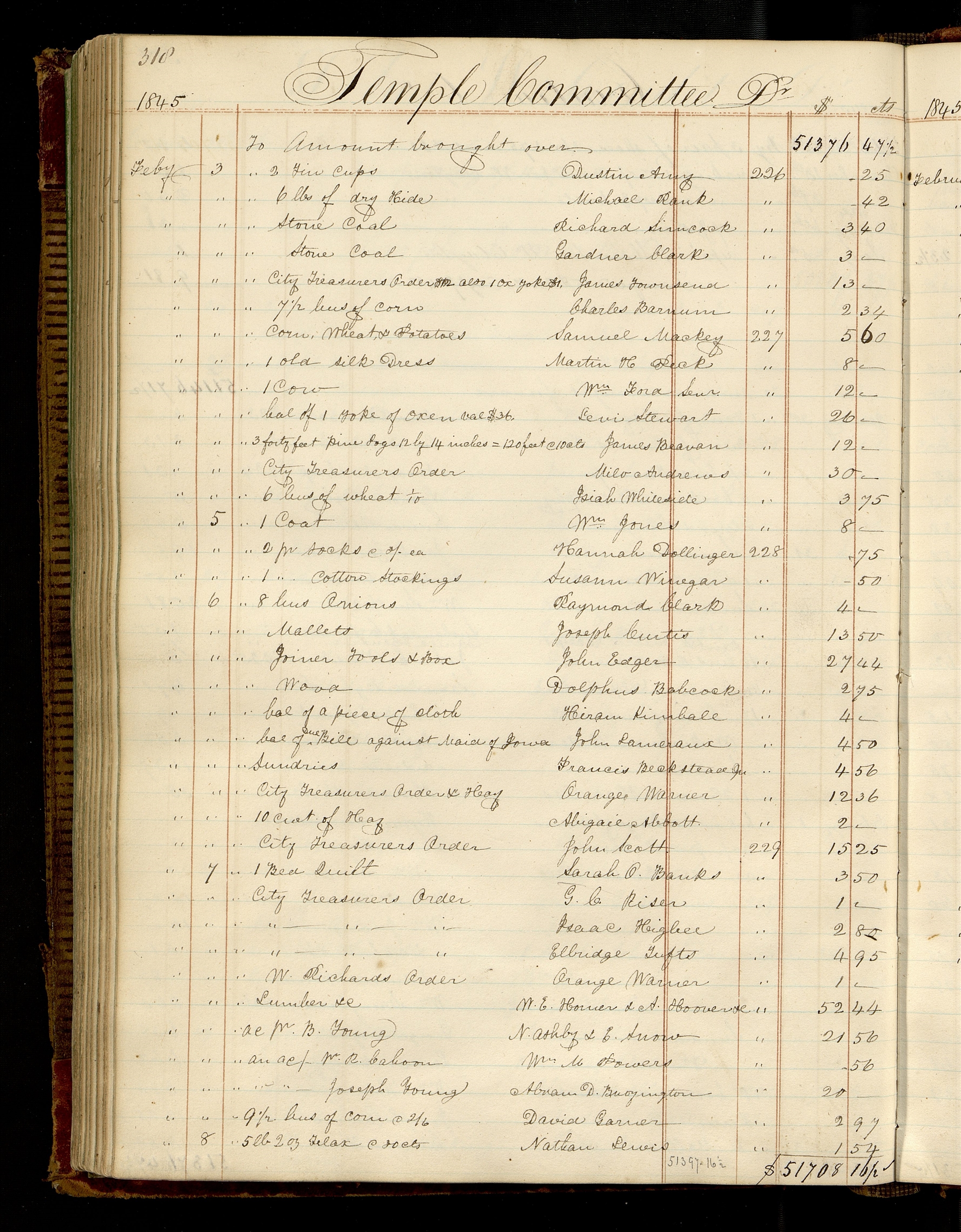 | [Feby 7] | [To] Lumber &c | & A[abraham] Hoover &c | [229] | 52.44 |