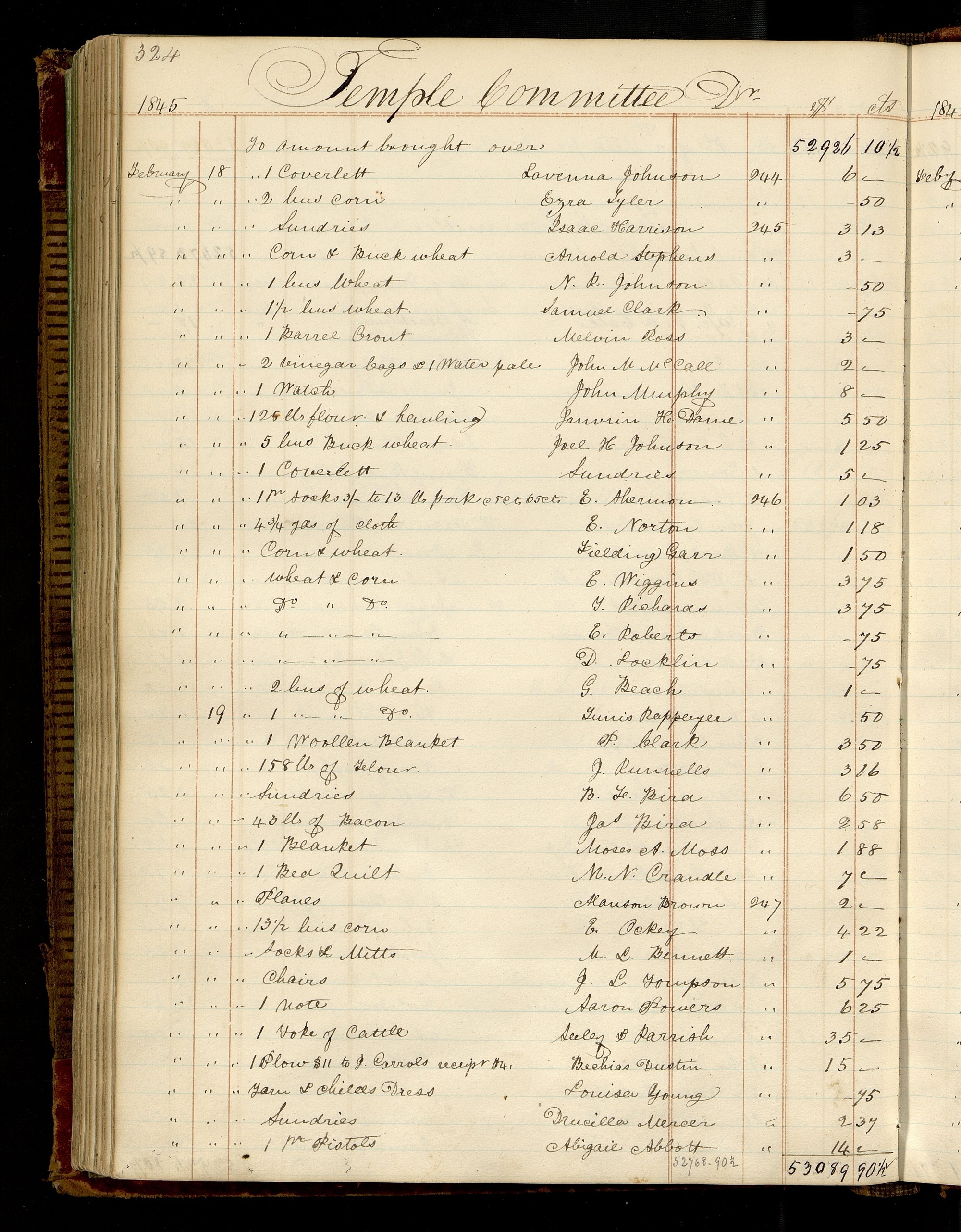 This likely led to the inscription of “Temple Committee Book A” on the spine of the volume. Some have mistaken this as an indication that this record book belonged to the Nauvoo temple committee; however, these are not temple committee records but rather accounts between the trustee-in-trust office and the Nauvoo temple committee.