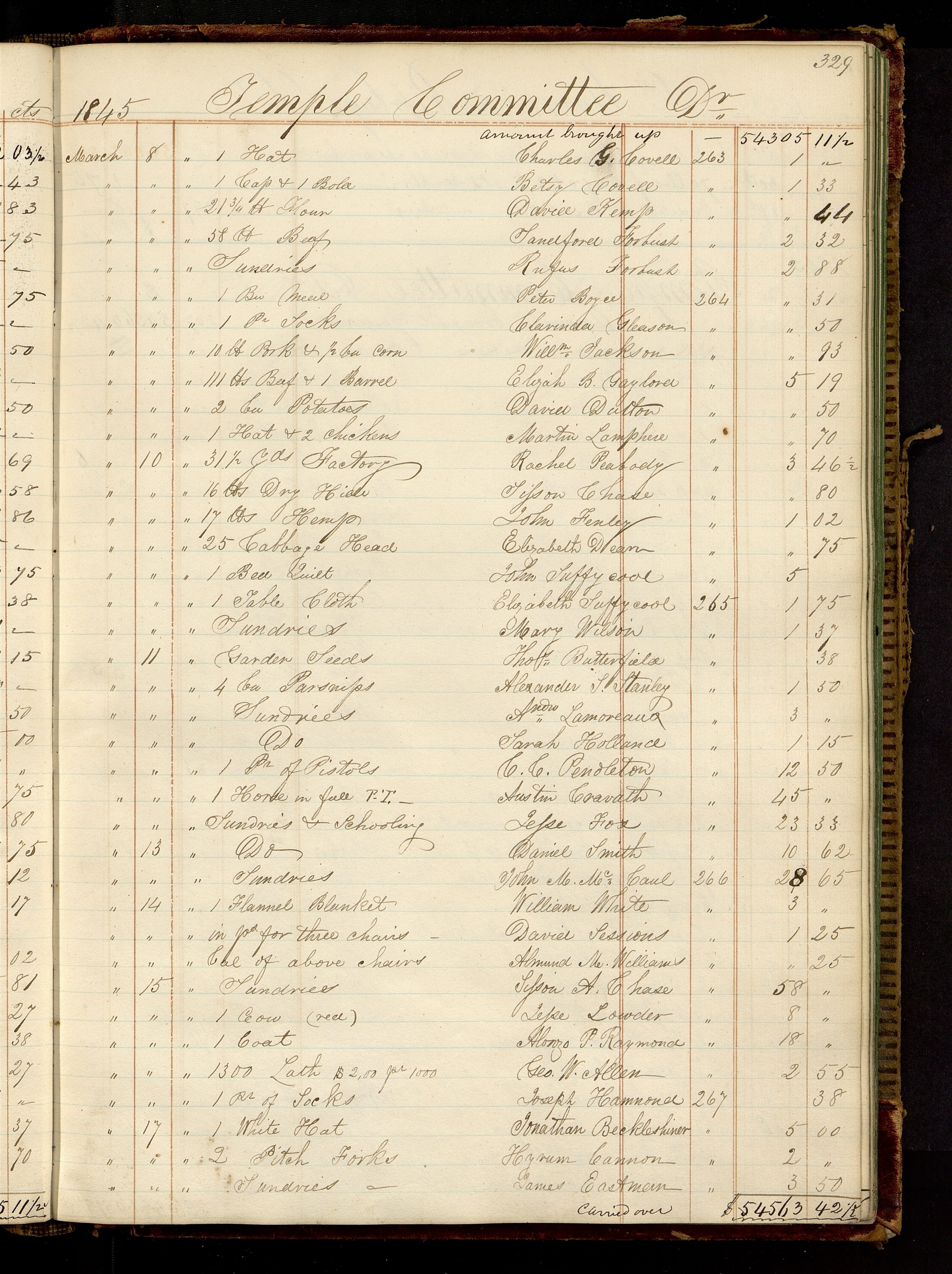 | March 8 | [To] 1 Hat | Charles G. Covell | 263 | 1.00 |