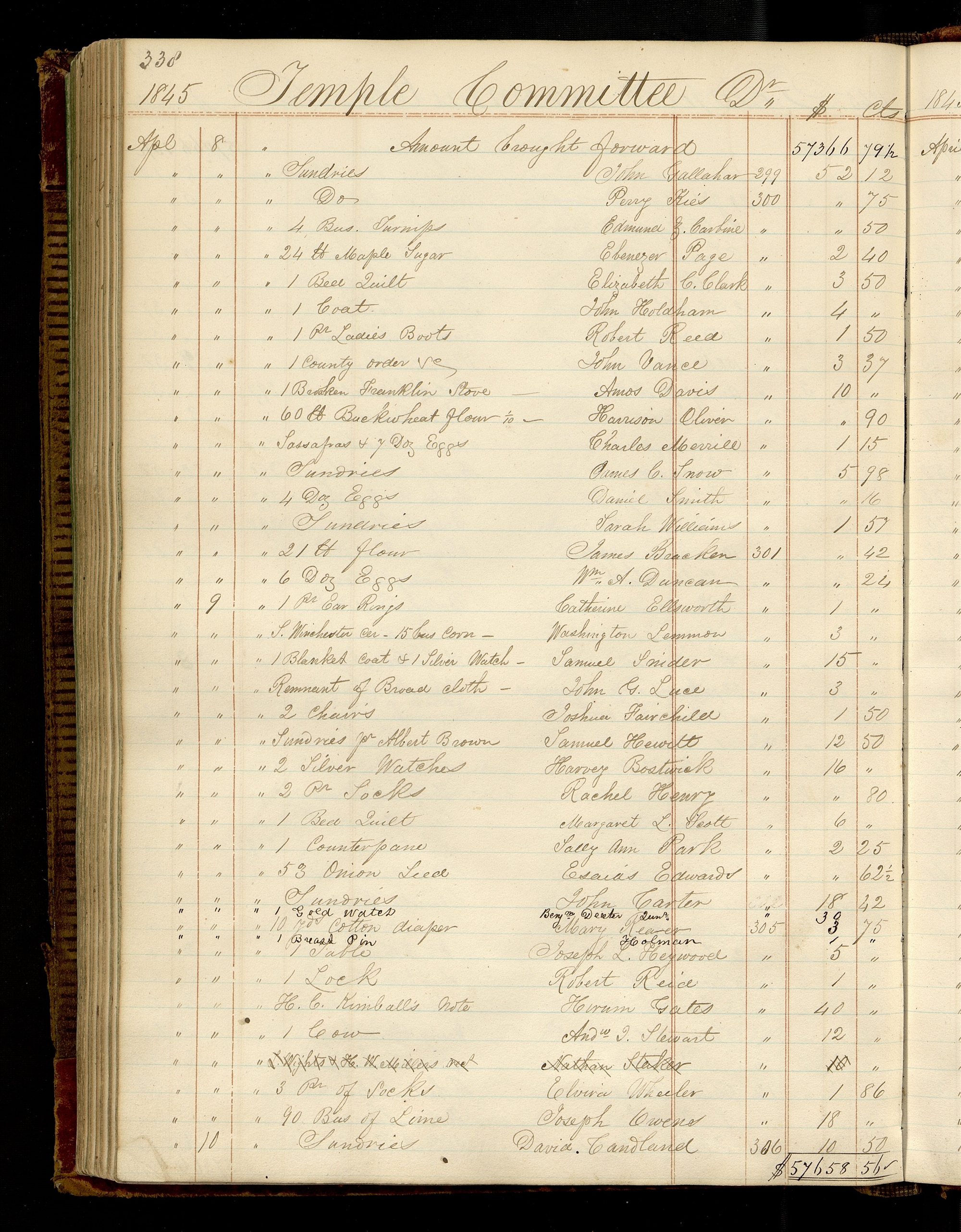 | Ap[ri]l 8 | [To] Amount brought forward | 57,366.79½ | ||