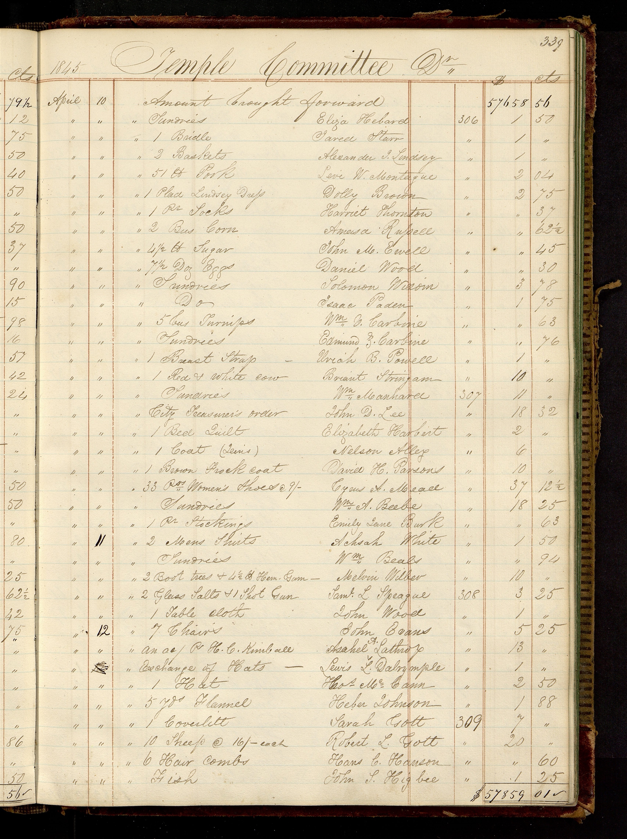 This likely led to the inscription of “Temple Committee Book A” on the spine of the volume. Some have mistaken this as an indication that this record book belonged to the Nauvoo temple committee; however, these are not temple committee records but rather accounts between the trustee-in-trust office and the Nauvoo temple committee.
