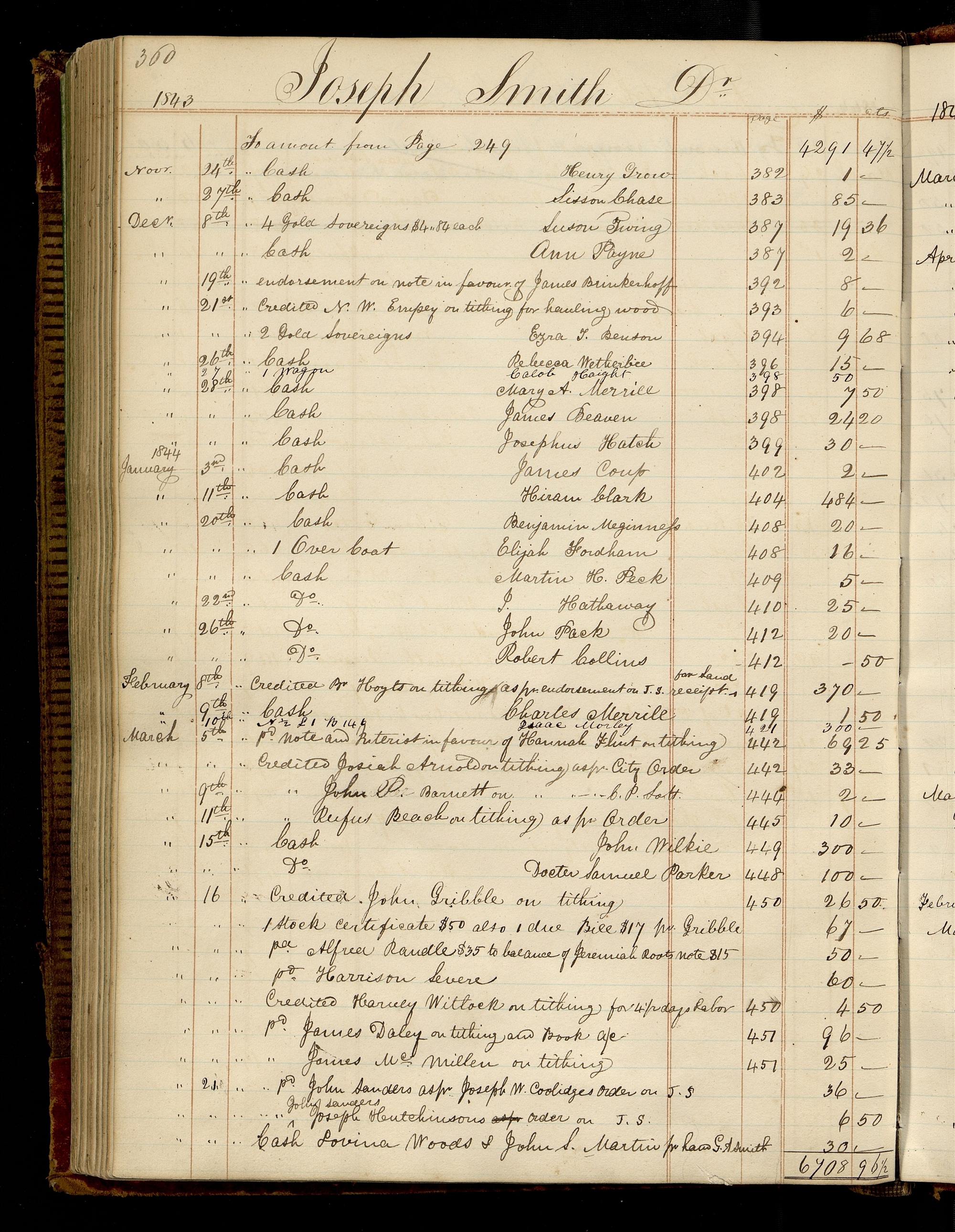 | [March 16] | [To] pd. on tithing and Book a/c— [account] | 451 | 96.00 |