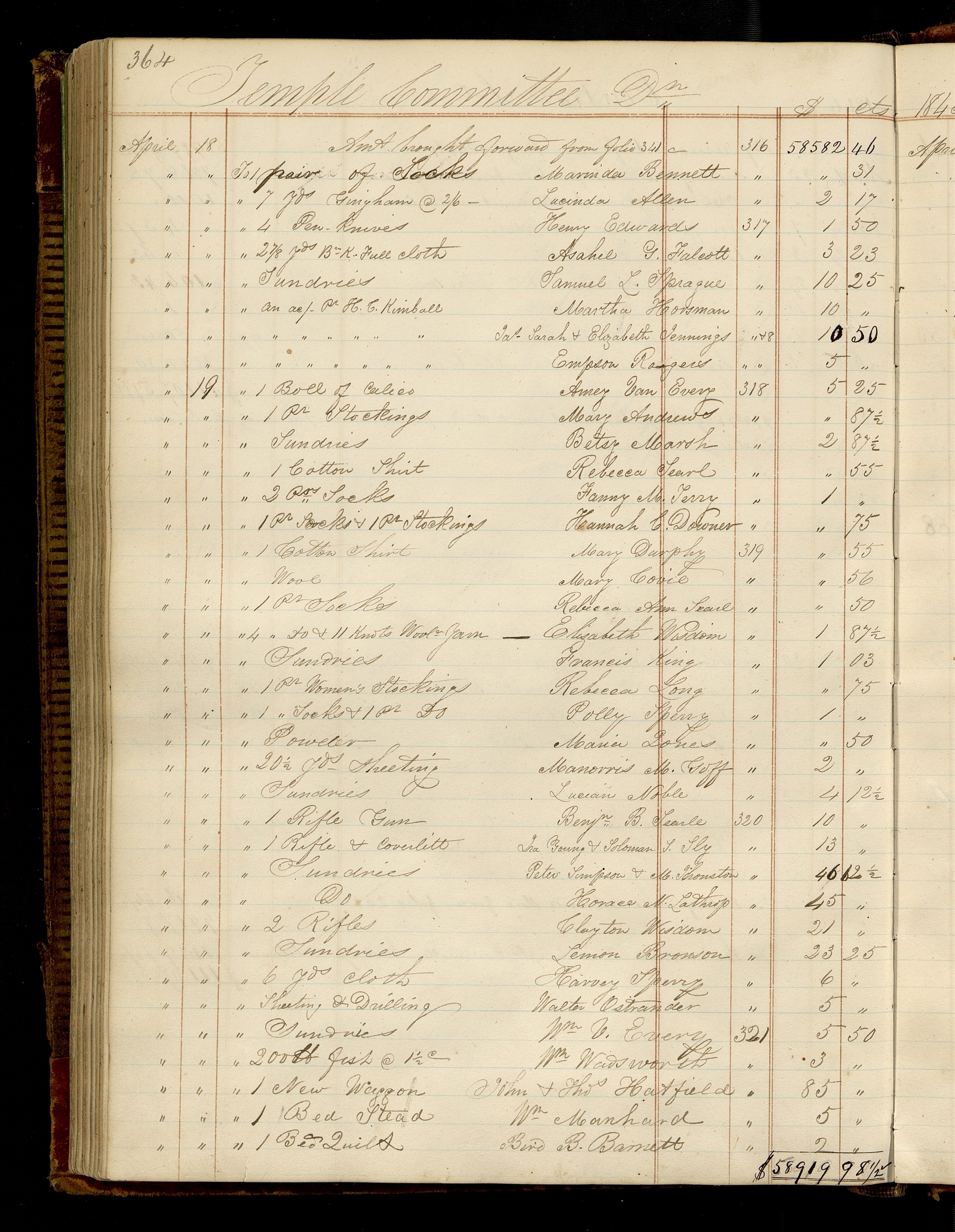 | [April 19] | [To] 2 P[ai]rs. Socks | Fanny M. Terry | [318] | 1.00 |