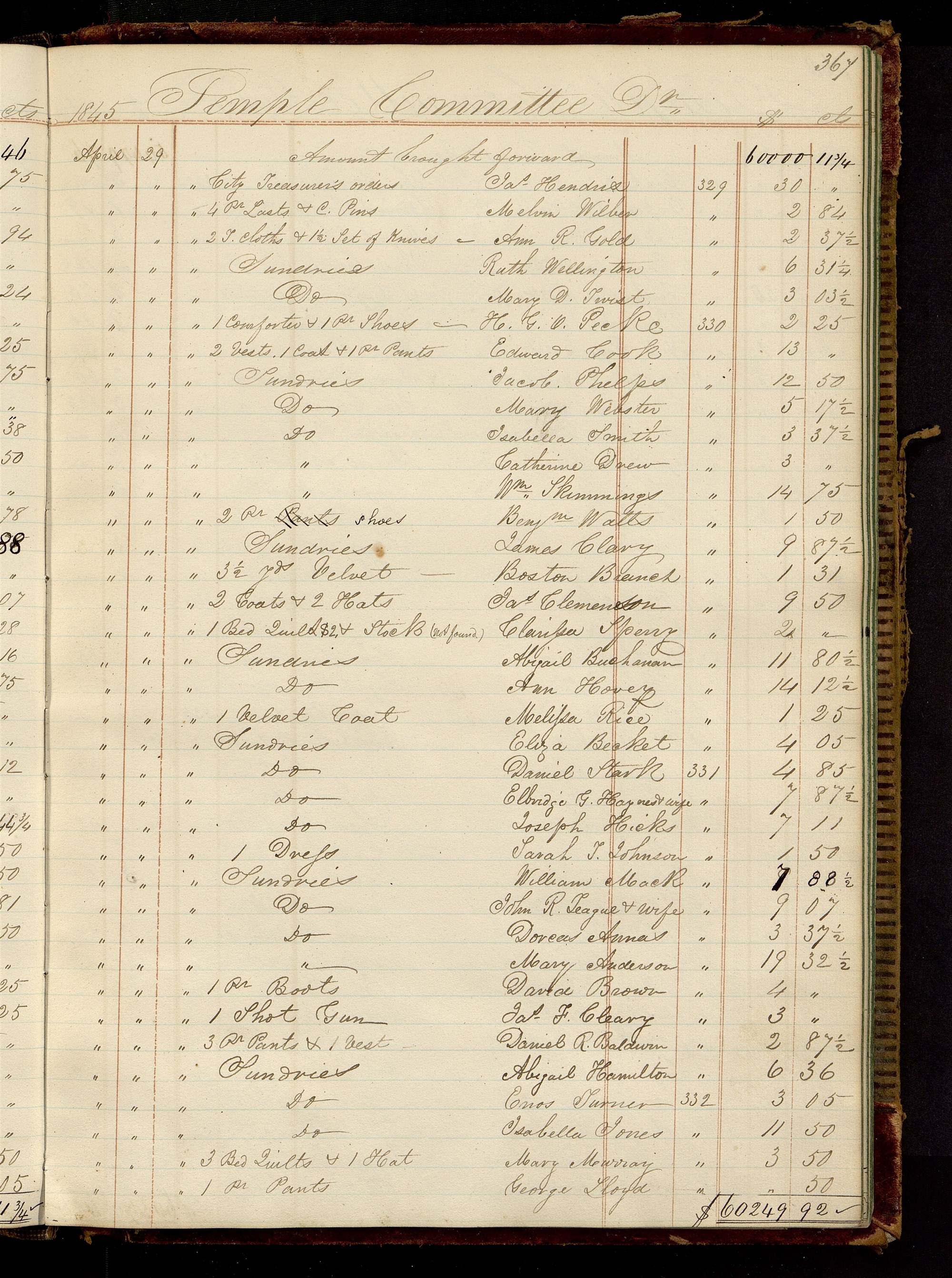 | [April 29] | [To Sundries] | Mary D. Twist | [329] | 3.03½ |