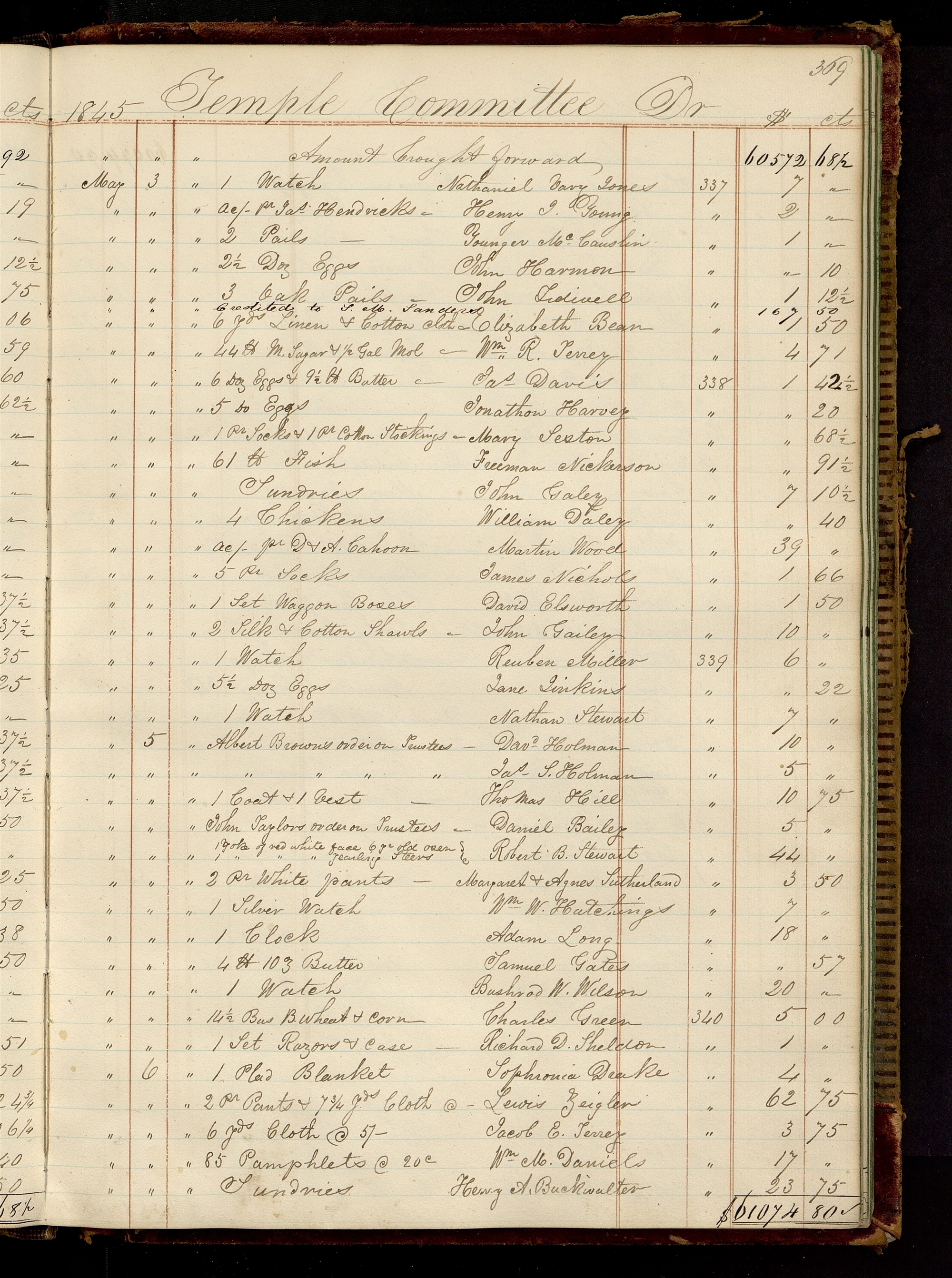 | [May 5] | [To] 1 Silver Watch | Wm W. Hutchings | [339] | 7.00 |