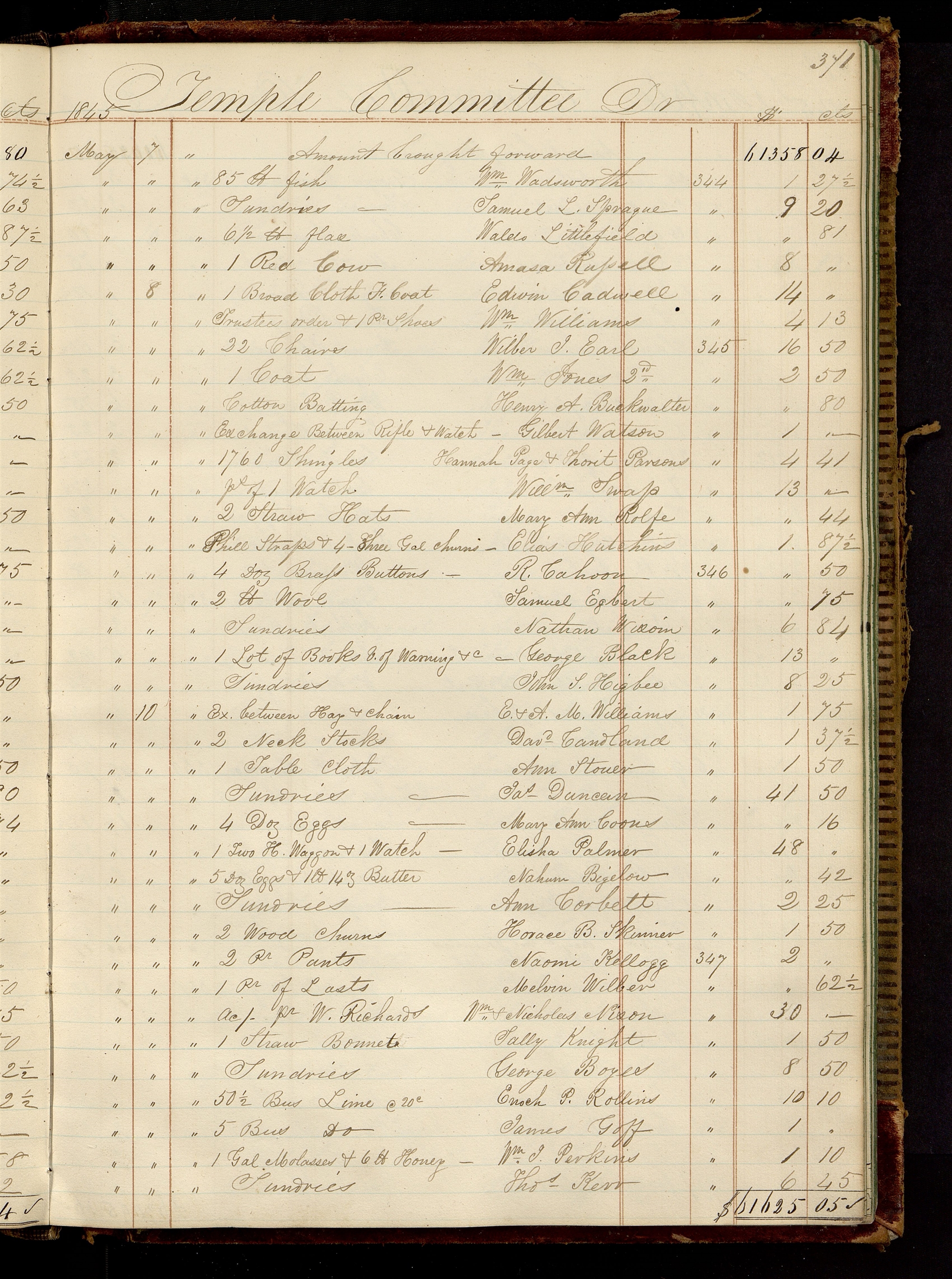 | [May 8] | [To] Sundries | Nathan Wixom | [346] | 6.84 |