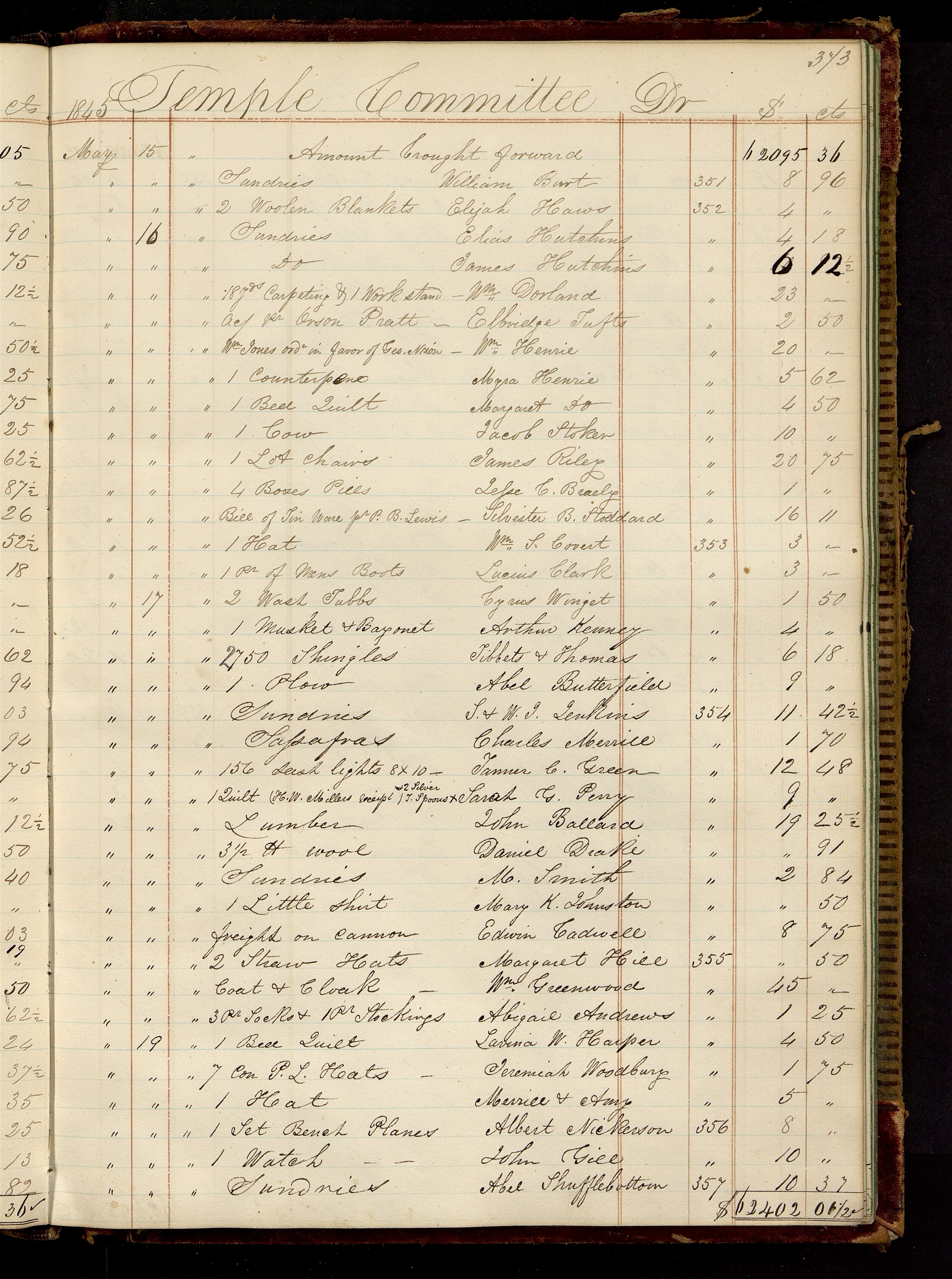 | [May 16] | [To] 1 Hat | Wm. S. Covert | 353 | 3.00 |