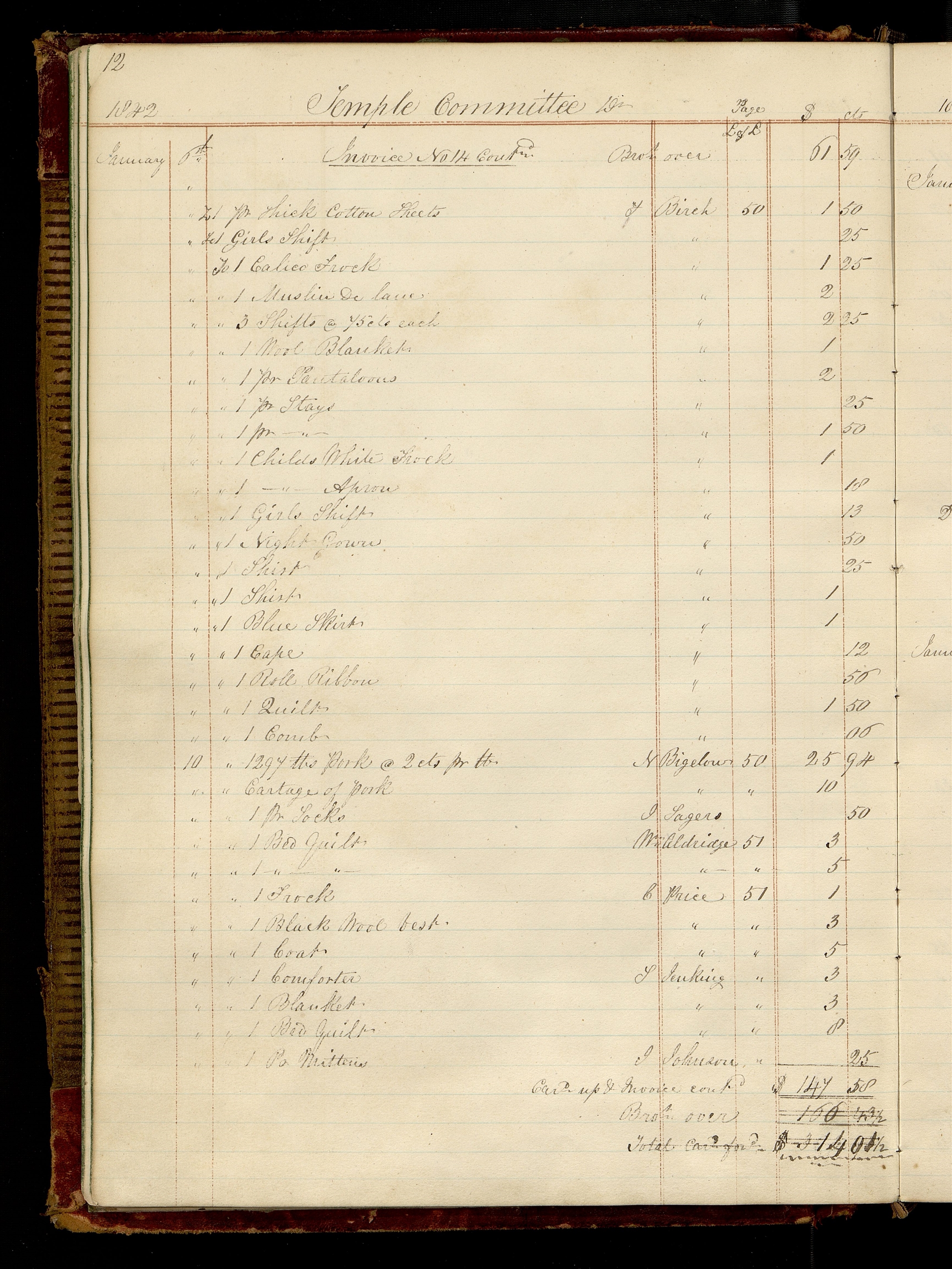 | January 6th. | Invoice No [Number] 14 Cont[inue]d. | Bro[ugh]t. over | 61.59 | |