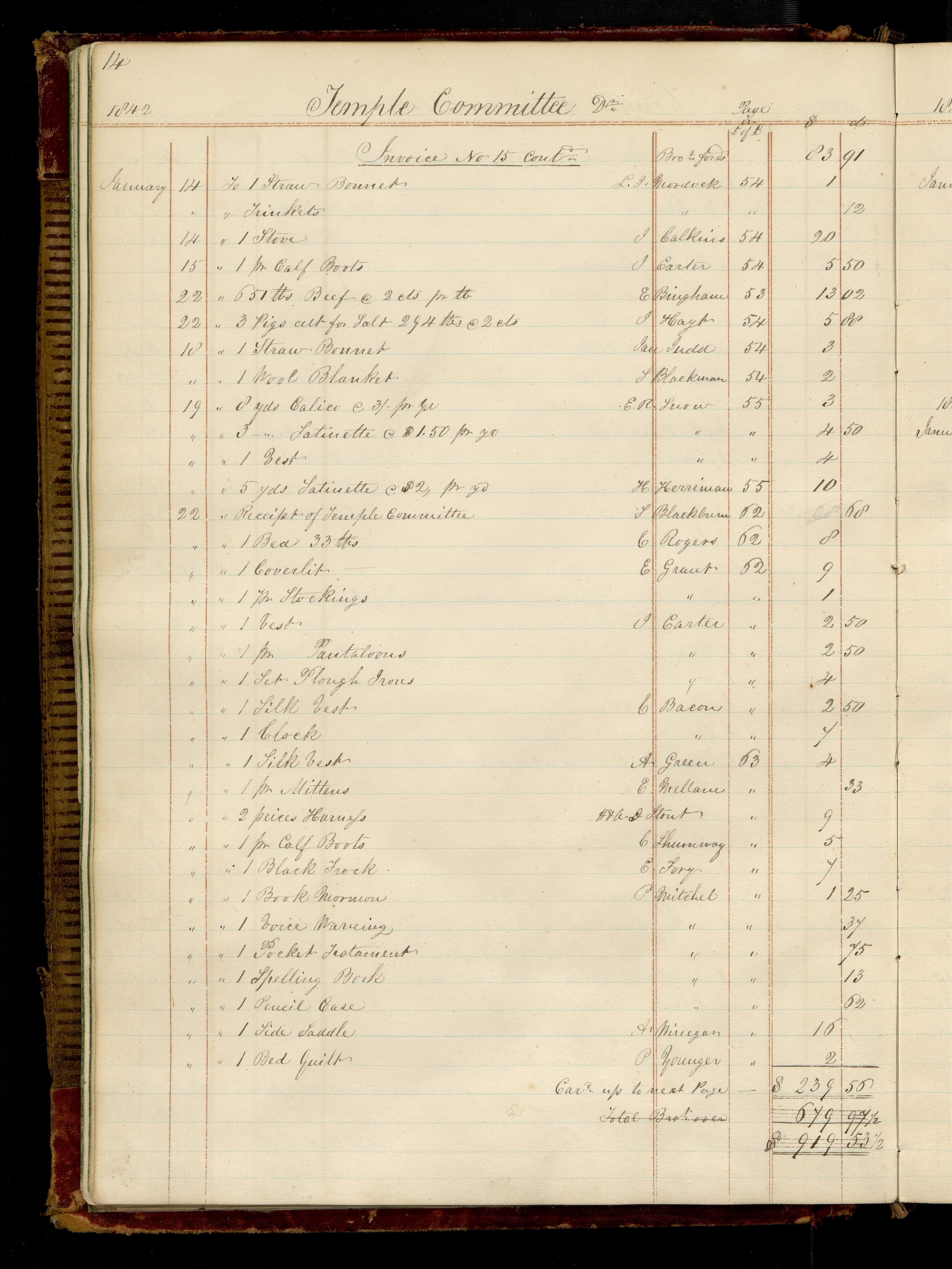 Trustee-in-Trust, Ledger A, 7–82. Two incomplete loose copies of “Invoice No 31” are extant and in the records of the Nauvoo temple committee. (Invoice, Trustee-in-Trust to Nauvoo Temple Committee, 24 Nov. 1842–8 Feb. 1843; Invoice, Trustee-in-Trust to Nauvoo Temple Committee, 24 Nov. 1842–25 July 1843.)