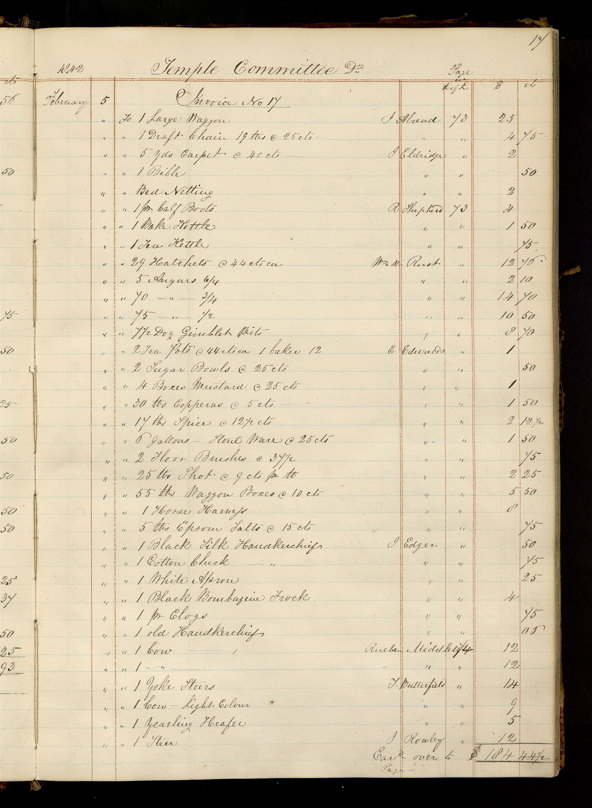 | Car[rie]d. over to Page— | $184.44½ | |||