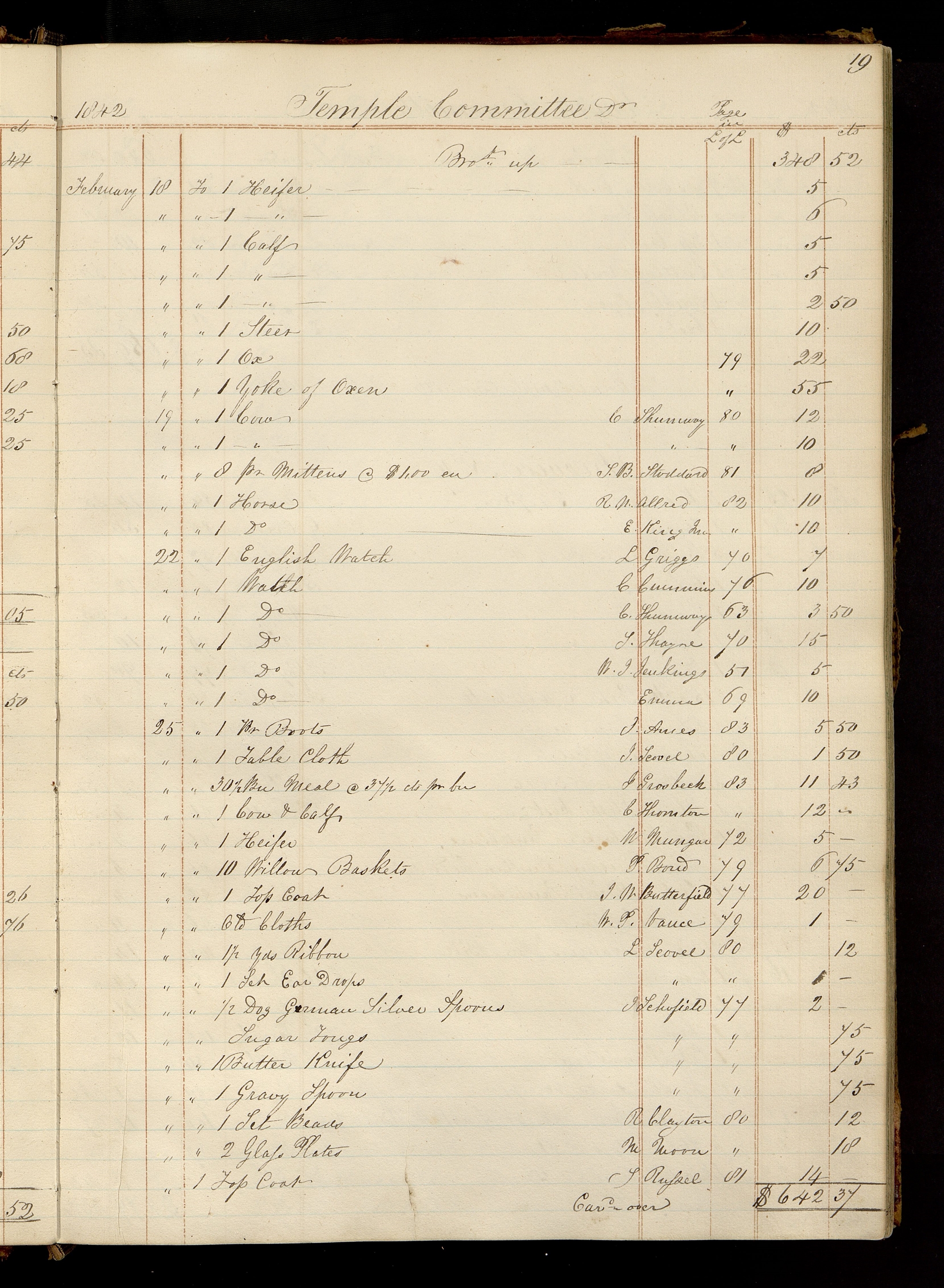 | [18] | [To] 1 Yoke of Oxen | [79] | 55.00 | |