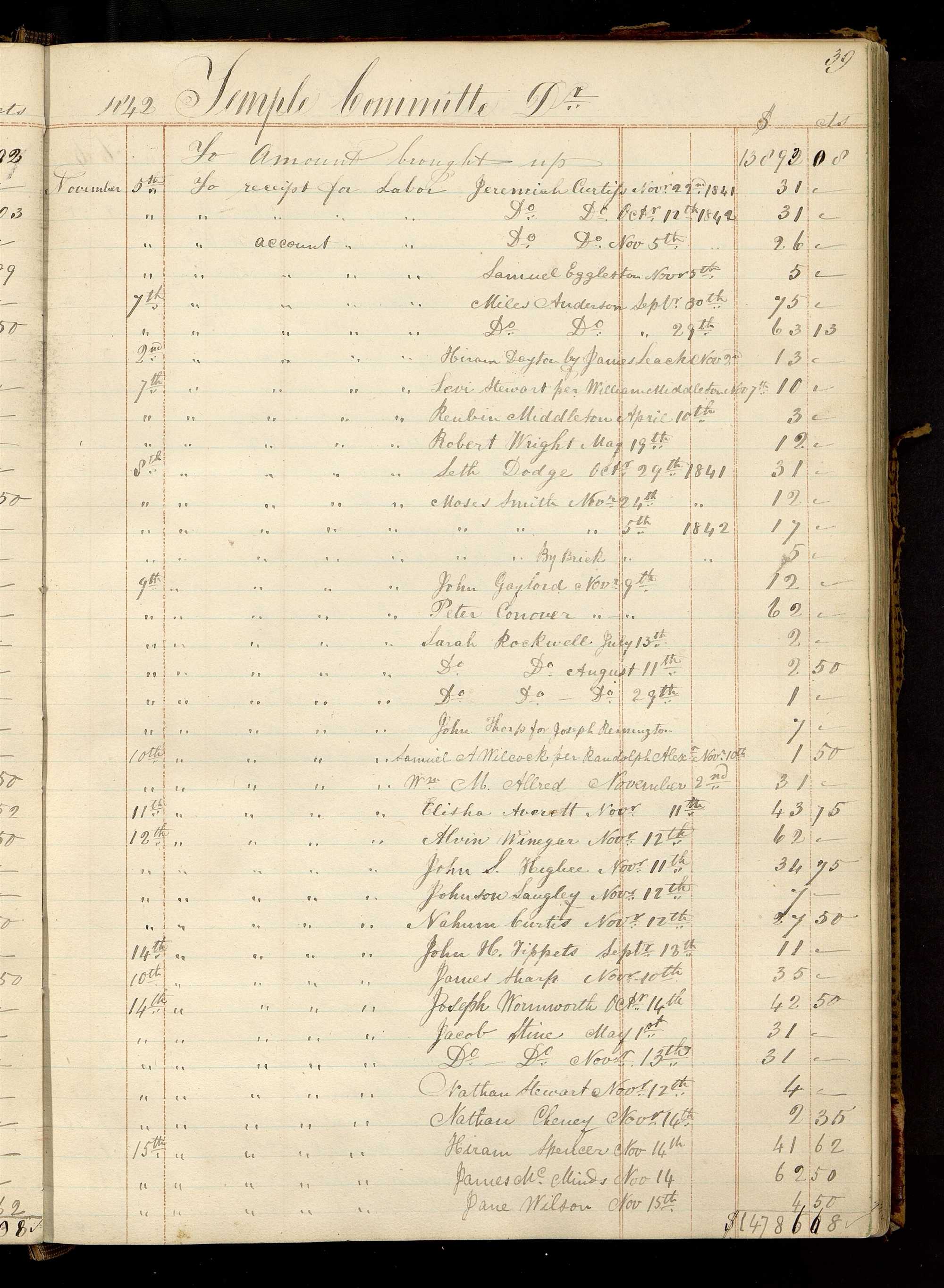 | 15th. | [To account for Labor] Hiram Spencer | Nov 14th | 41.62 | |