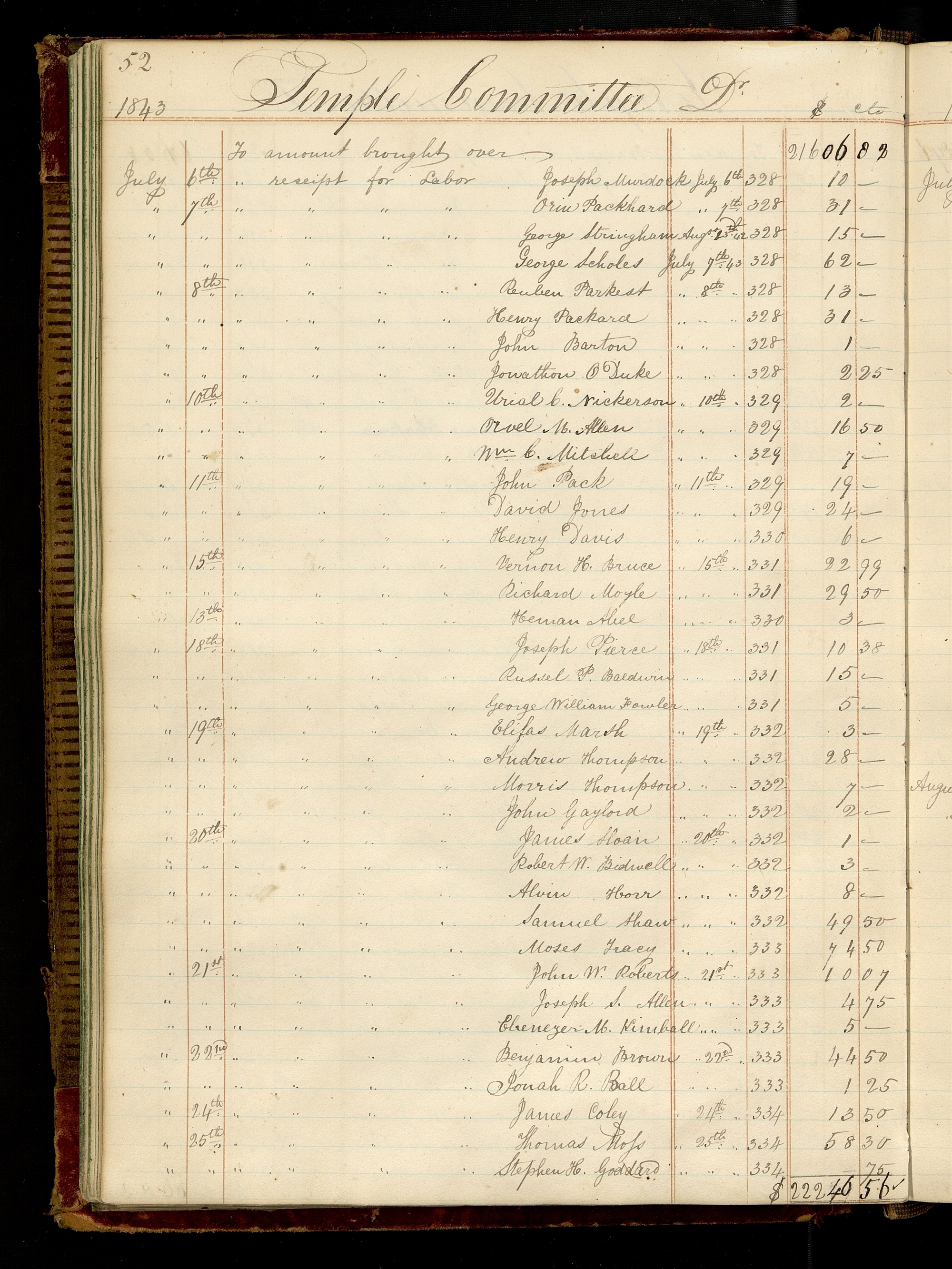 | [July 20th.] | [To receipt for Labor] | [July 20th. 1843] | 332 | 3.00 |