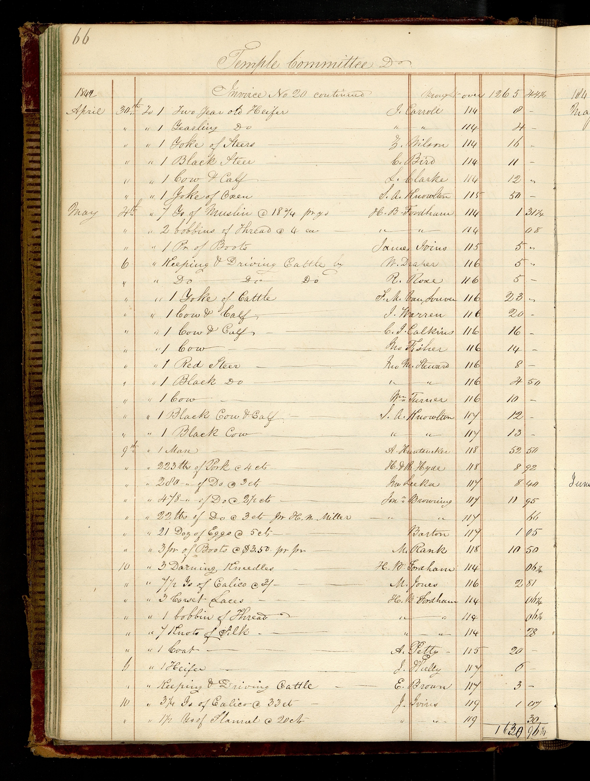 | 1842 | Invoice No [Number] 20 continued | Brought over | 1,265.44¼ | |