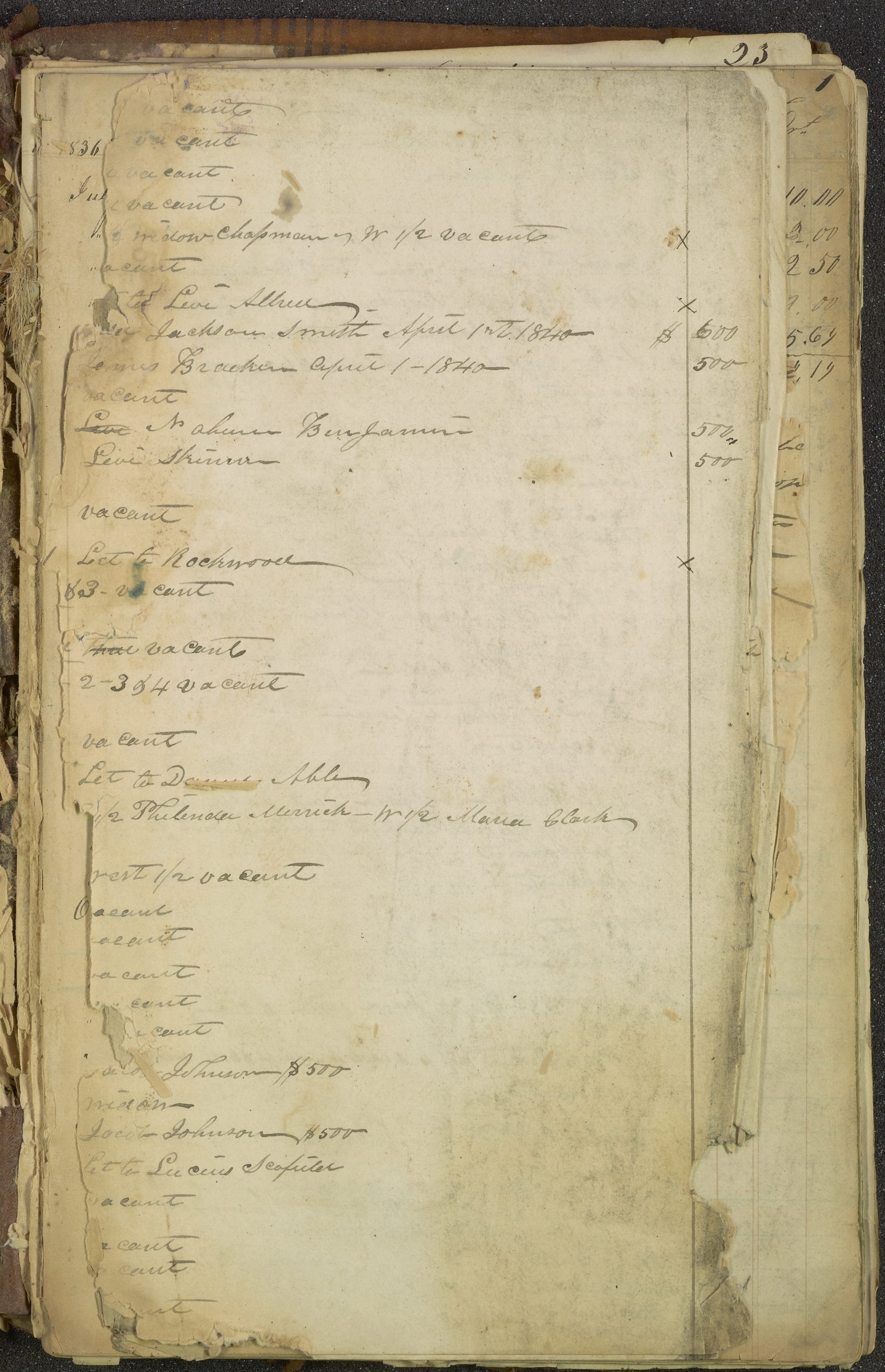 | [page torn] | [page torn] | 1/2 widow Chapman— W[est] 1/2 vacant | |