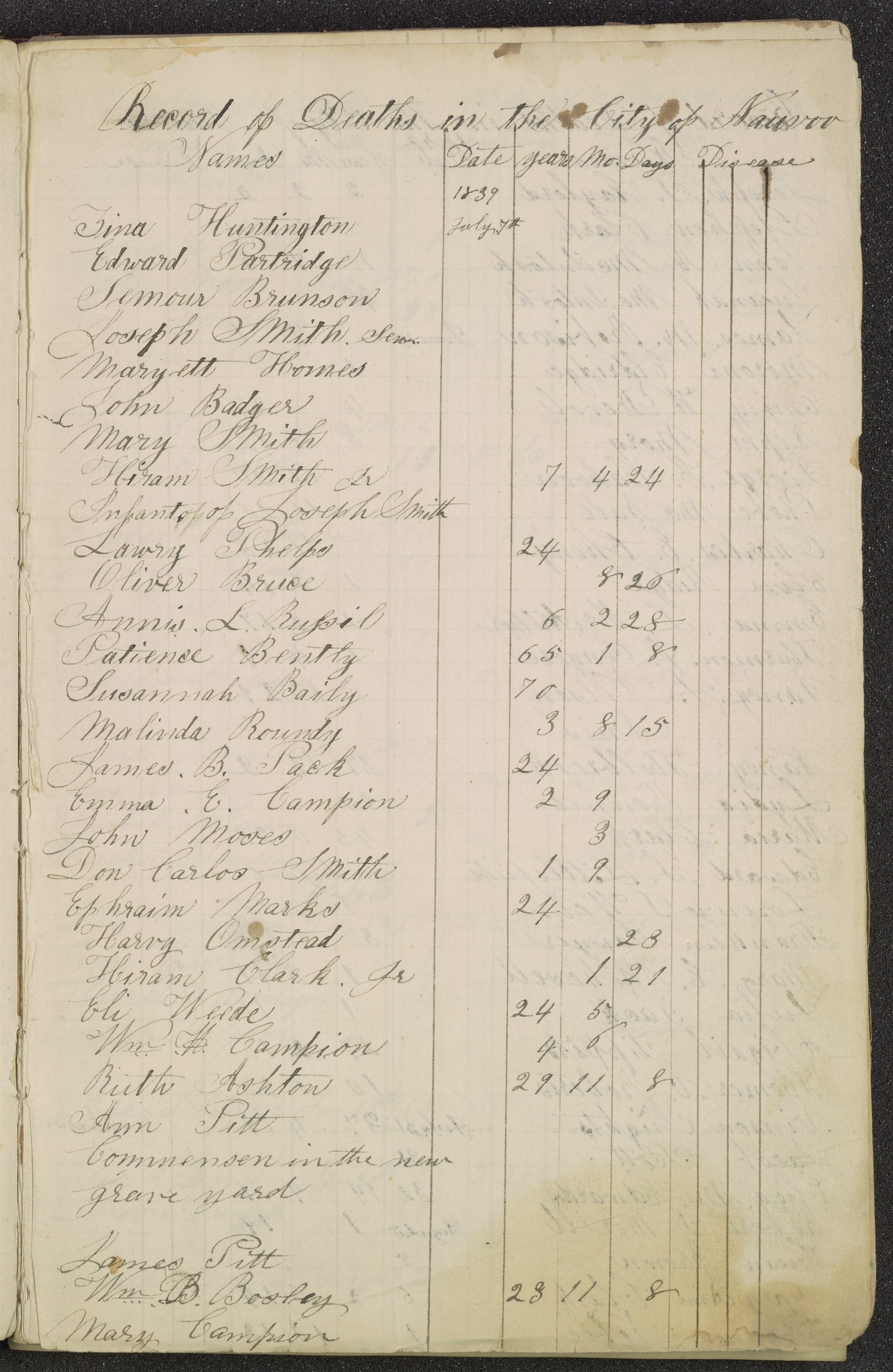 William D. Huntington, Cemetery Records, 1839–1846